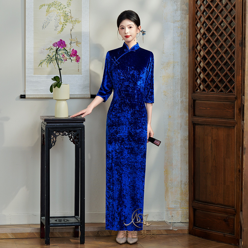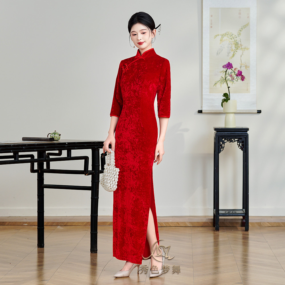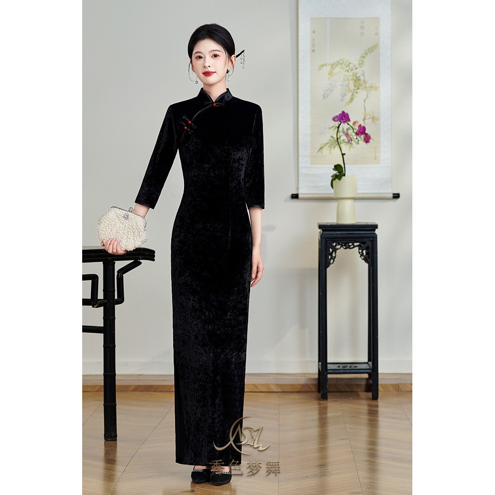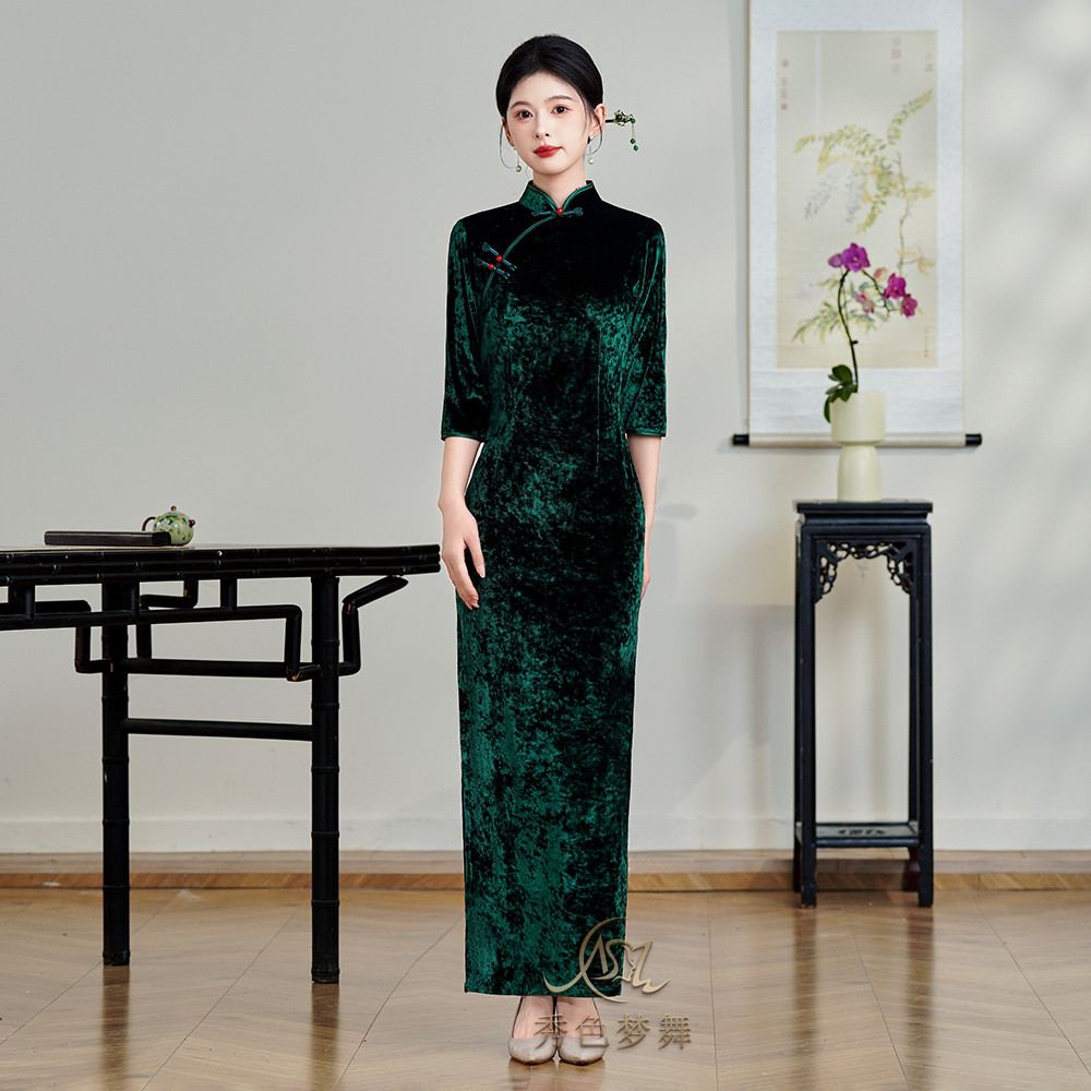 夜上海新款显瘦长款旗袍妈妈装中国风年会舞台演出走秀高档连衣裙