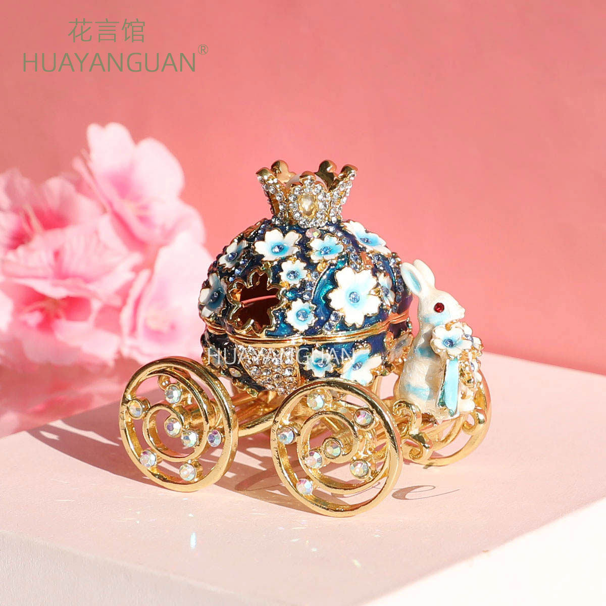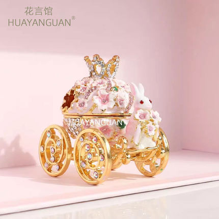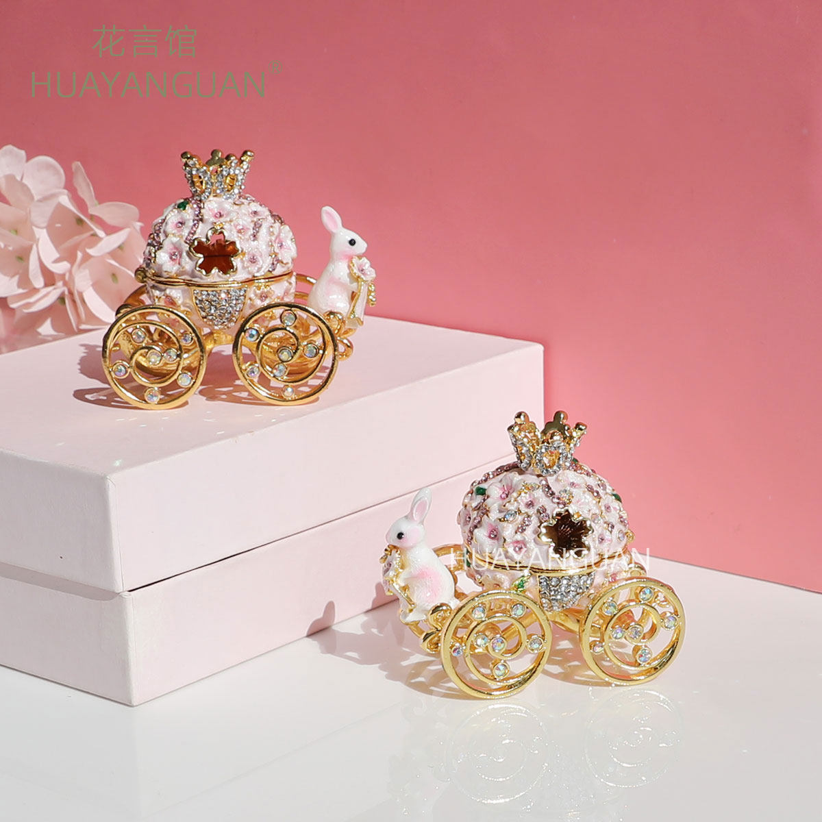 结婚对戒盒樱花兔子马车家居摆件少女心礼物项链盒皇冠首饰礼品盒