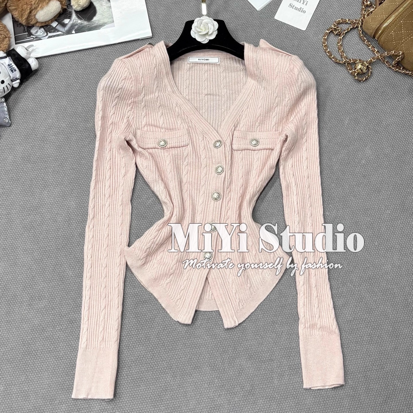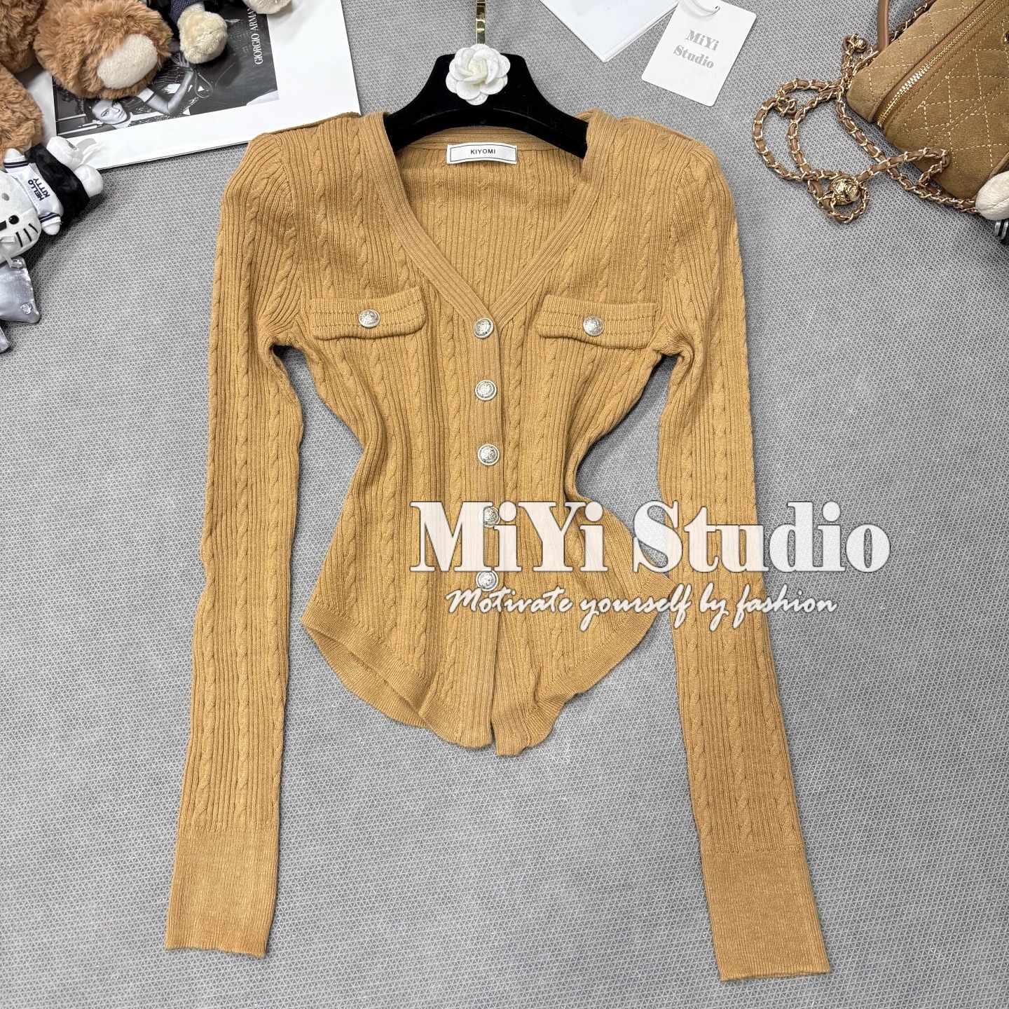 MiYiStudio实拍秋冬OOTD韩国东大门巴曼风V领针织衫显瘦打底衫