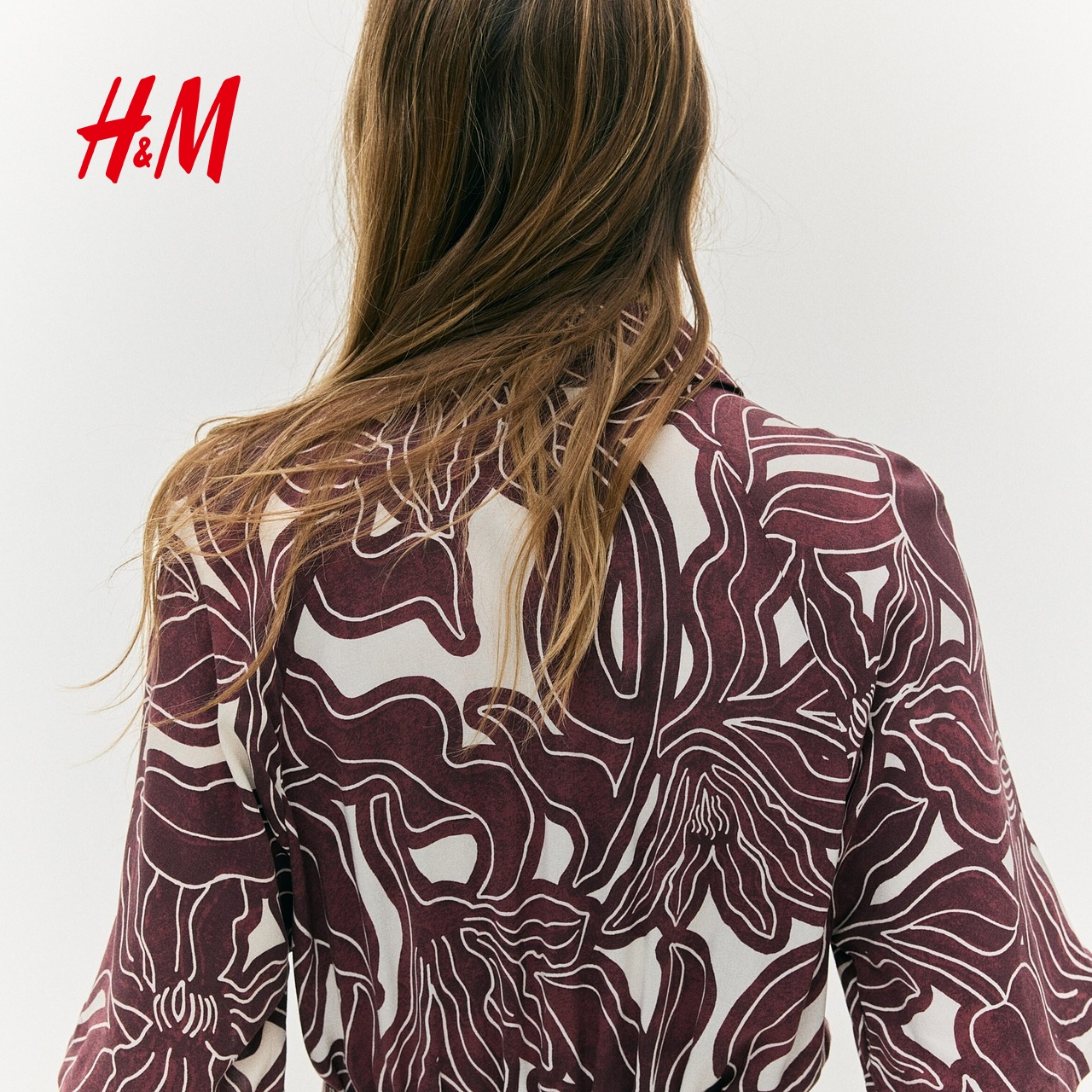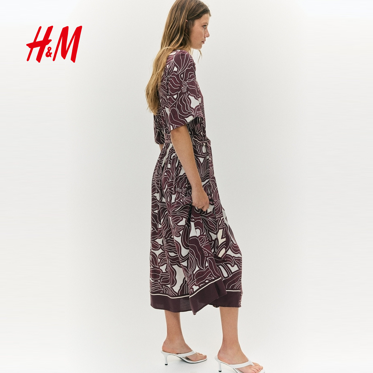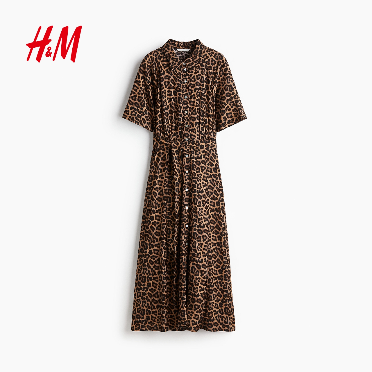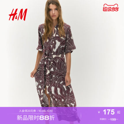 HM女装连衣裙2025年秋季新款翻折领潮流气质精致柔软裙子1217576