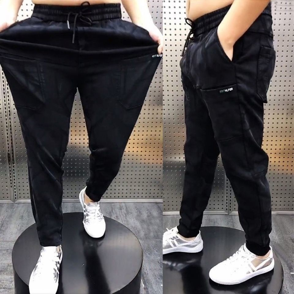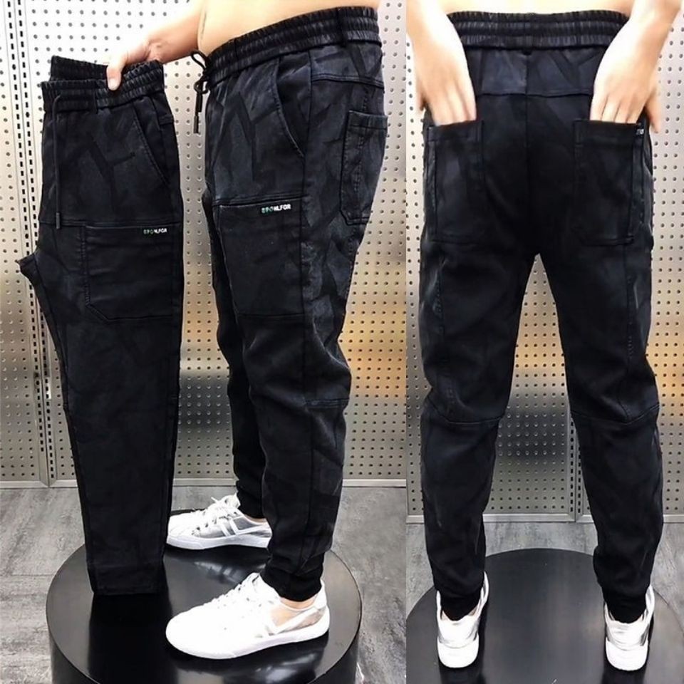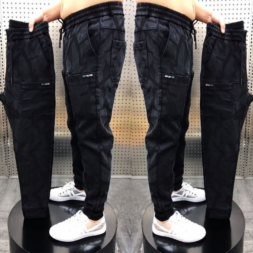 松紧腰弹力工装牛仔裤男款加肥加大休闲小脚哈伦裤肥佬耐磨工作裤