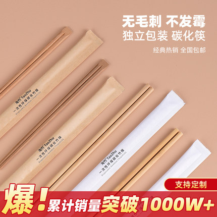 一次性筷子高档家用碗筷独立包装方便卫生外卖商用定制竹筷子加长