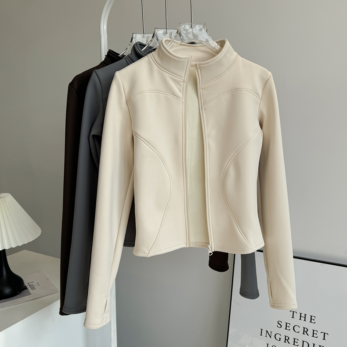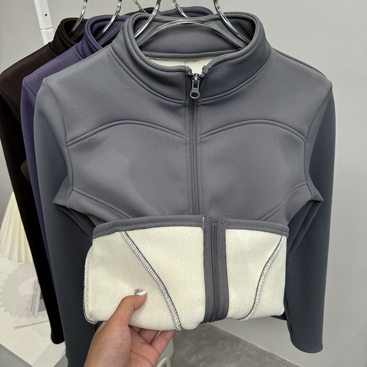 加绒秋冬瑜伽上衣女运动外套修身立领夹克拉链开衫跑步训练健身服