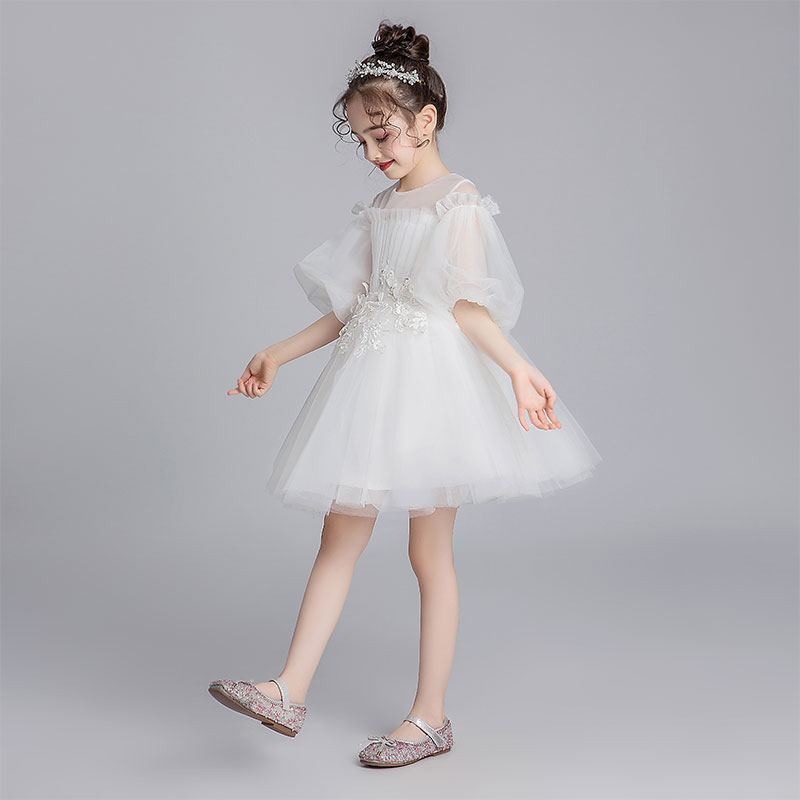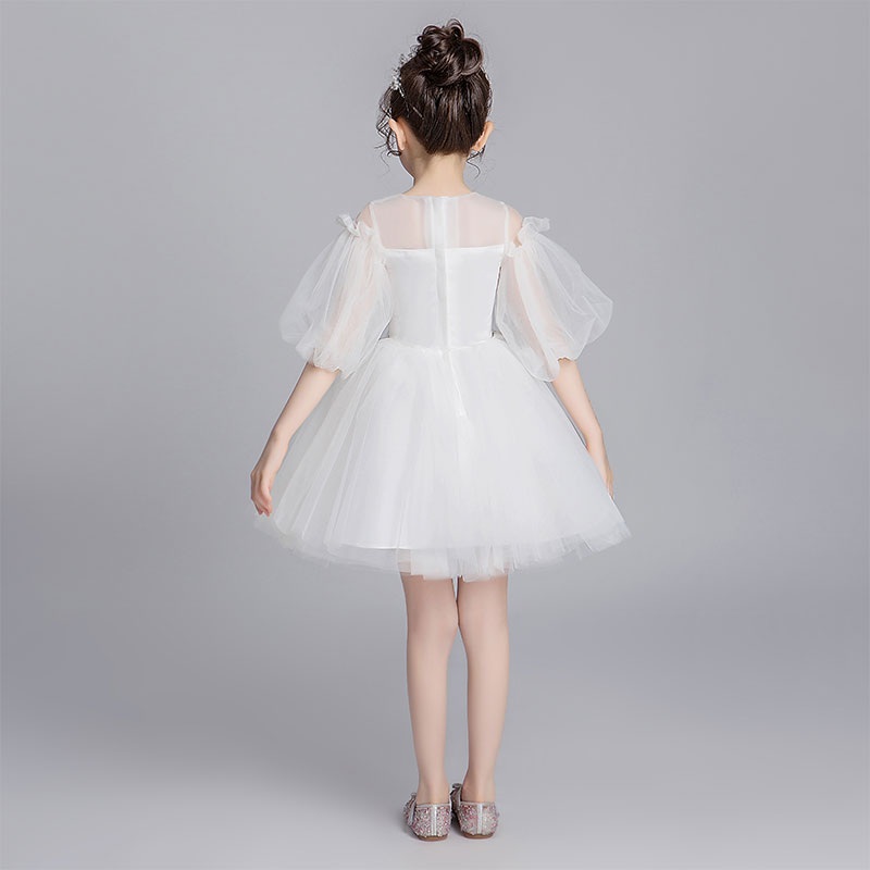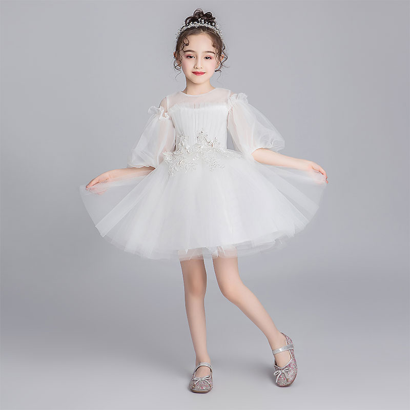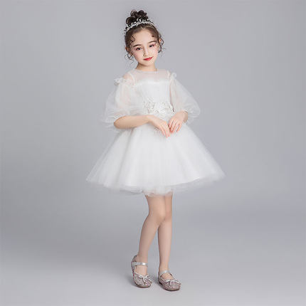 女童晚礼服公主裙蓬蓬纱小花童婚纱洋气泡泡袖小女孩儿童主持人白