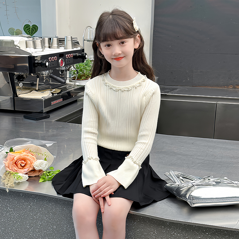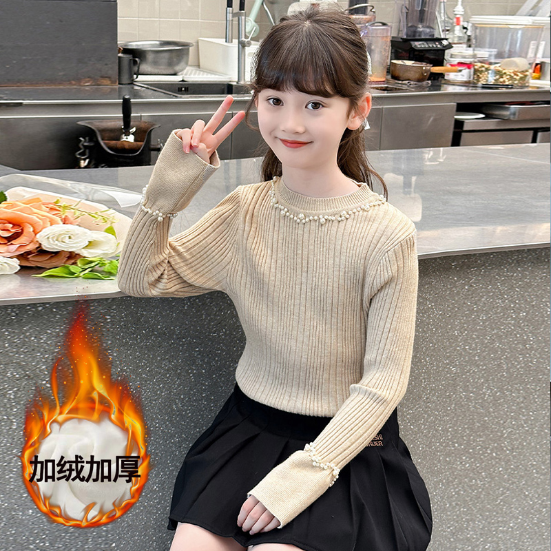 女童毛衣针织打底衫2025秋冬新款儿童中大童半高领一体绒保暖内搭