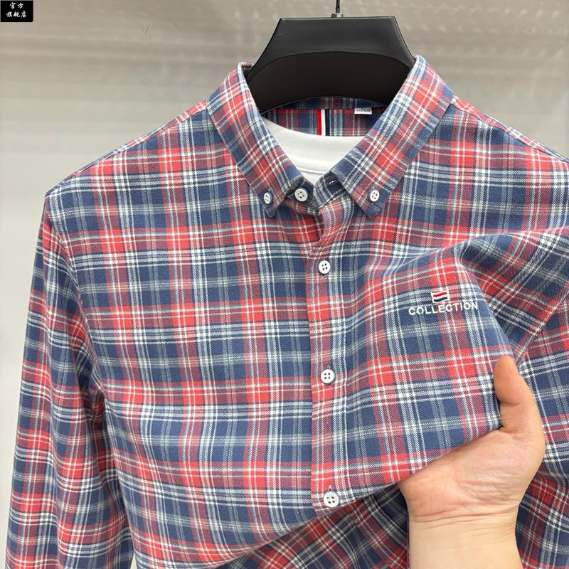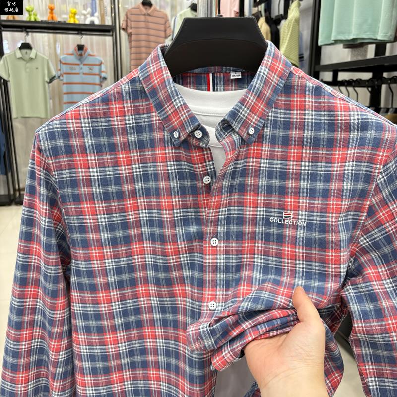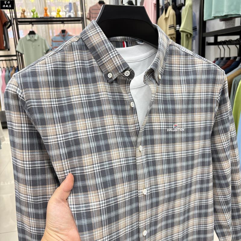 保罗官方高端纯棉格子长袖衬衫男春秋磨毛衬衣男士免烫寸衫休闲打