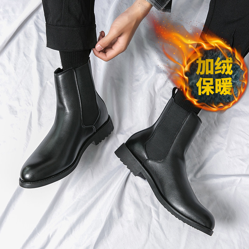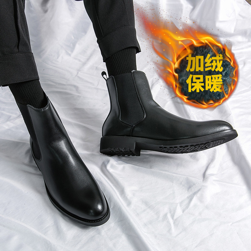 切尔西靴男冬季加绒高帮休闲皮鞋英伦内增高男士时尚尖头马丁靴男