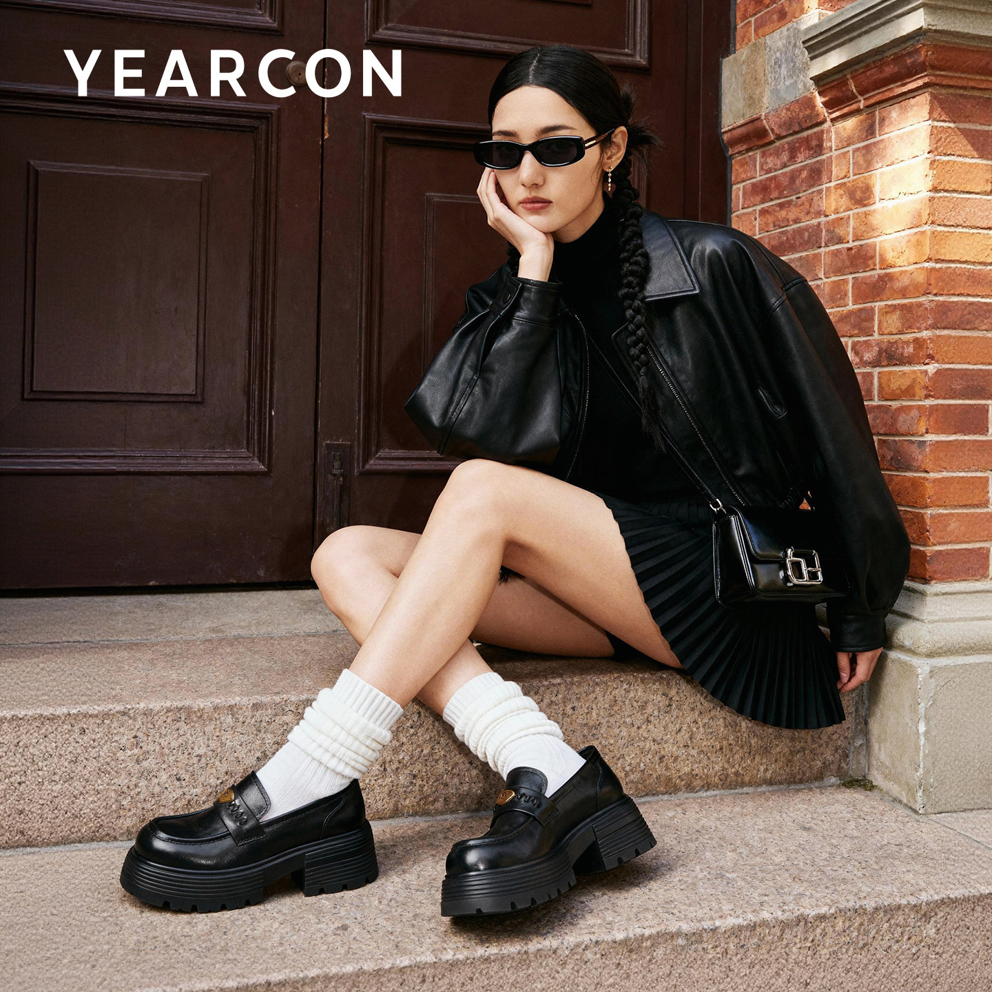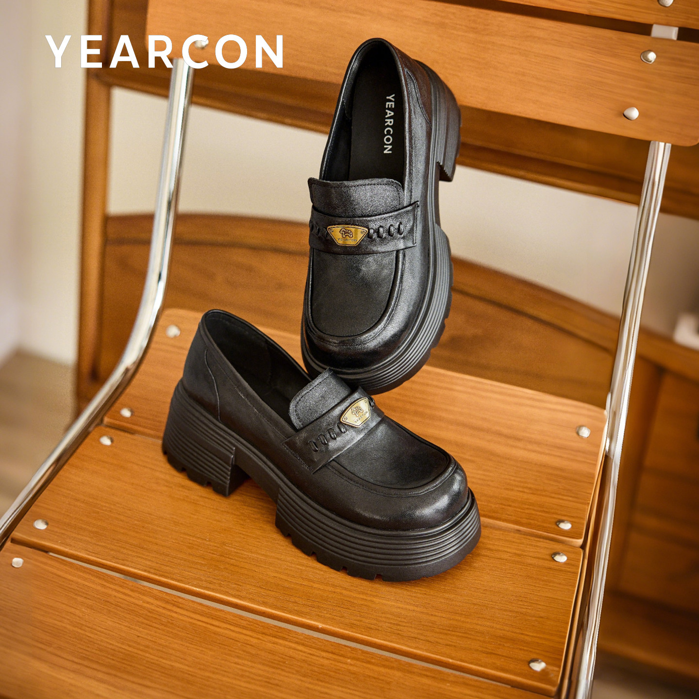 意尔康真皮乐福鞋女厚底2026春季新款增高不累脚jk小皮鞋单鞋黑色