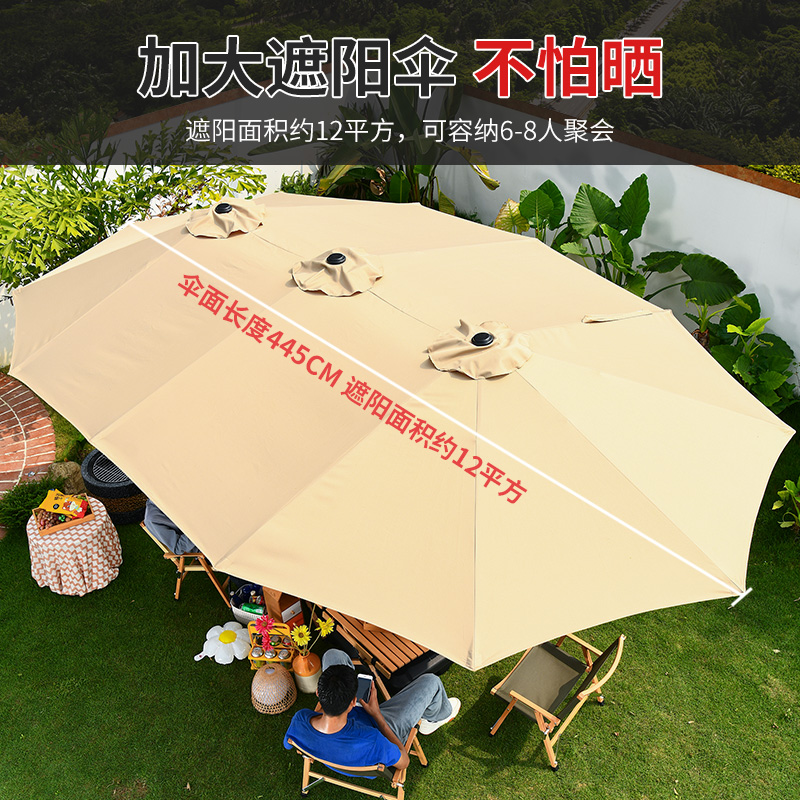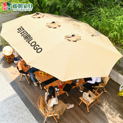藤朝户外三头遮阳伞室外露营外摆中柱大伞饭厅商用遮阳伞庭院大伞