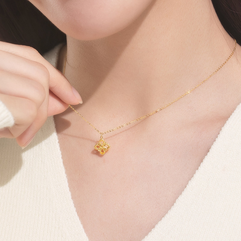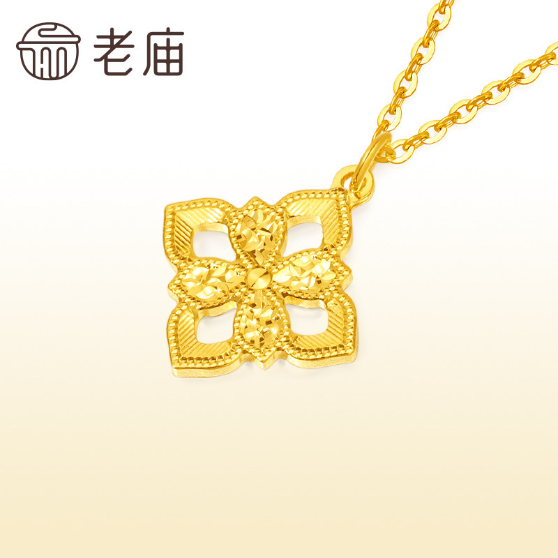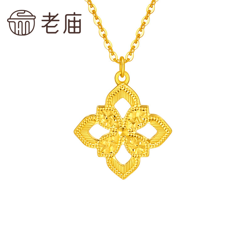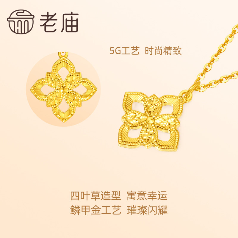 老庙黄金足金鳞甲金四叶草项链金光闪闪四叶草幸运美好5G精致时尚