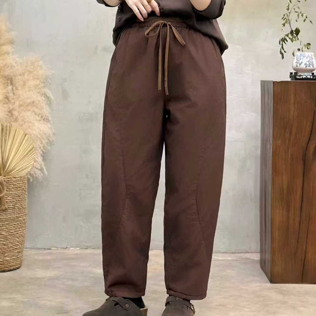 冬季复古100%纯棉哈伦裤系绳松紧腰夹棉加厚宽松显瘦棉裤5010