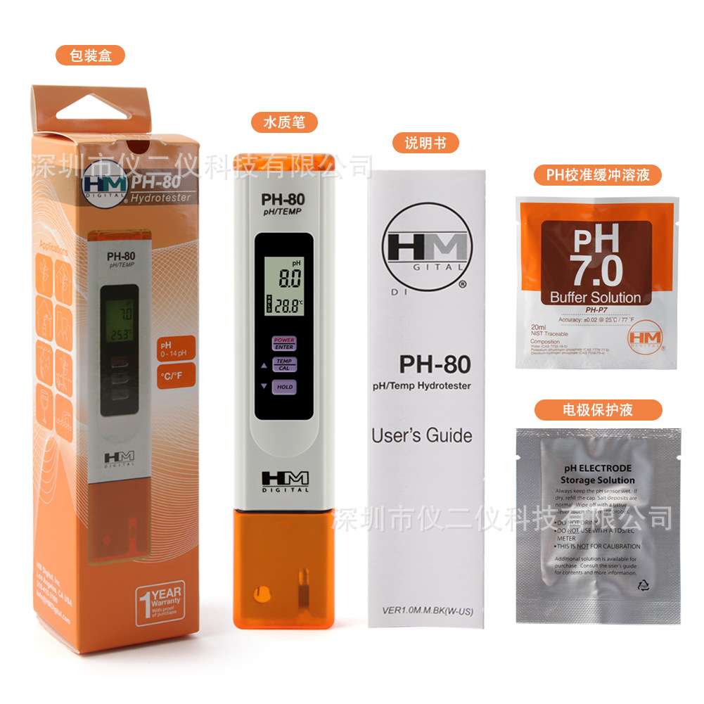 PH-80高精度便携式2合1水质分析仪酸碱度 温度测试笔鱼缸养殖PH计
