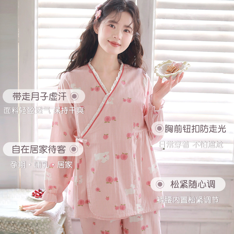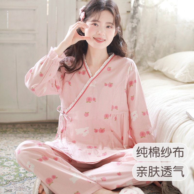 带胸垫 富朵春秋月子服薄纯棉纱布睡衣孕妇产后哺乳衣待产家居服