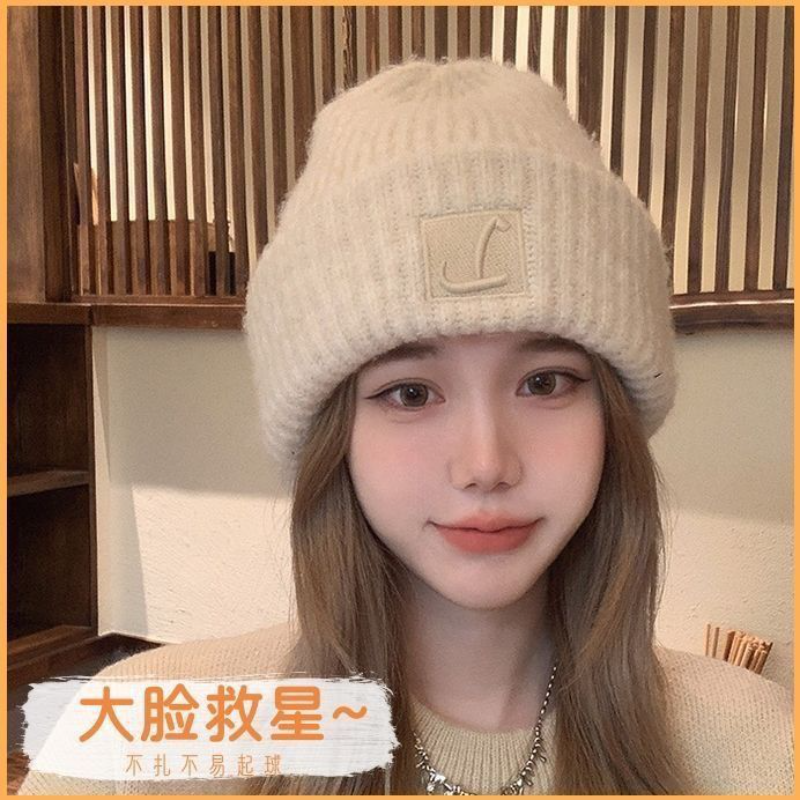 大头围毛线帽子女款秋冬季保暖堆堆冷帽大脸显脸小针织护耳帽户外