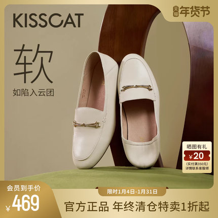 KISSCAT接吻猫[小软包开车鞋]秋新舒适豆豆鞋单鞋皮鞋平底乐福鞋
