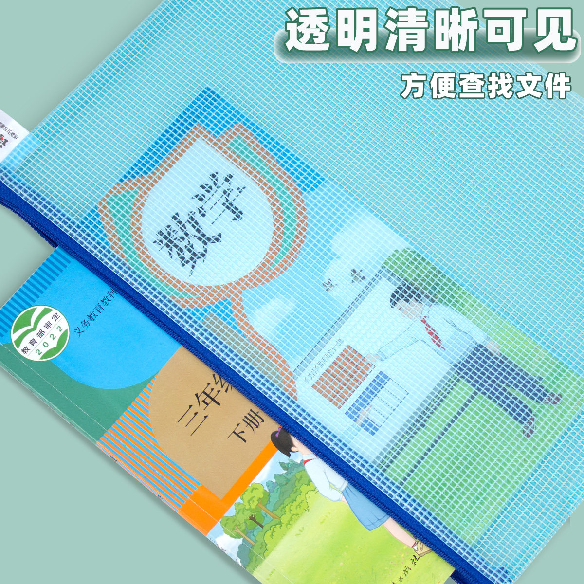 a4网格拉链袋防水透明资料袋小学生文具袋试卷收纳办公用考试袋子