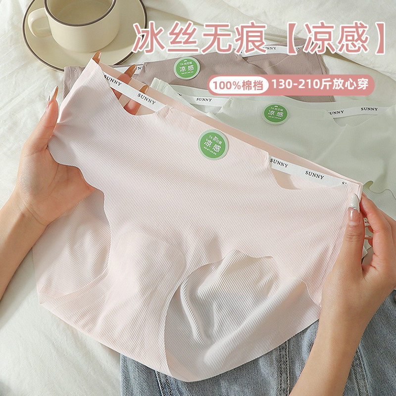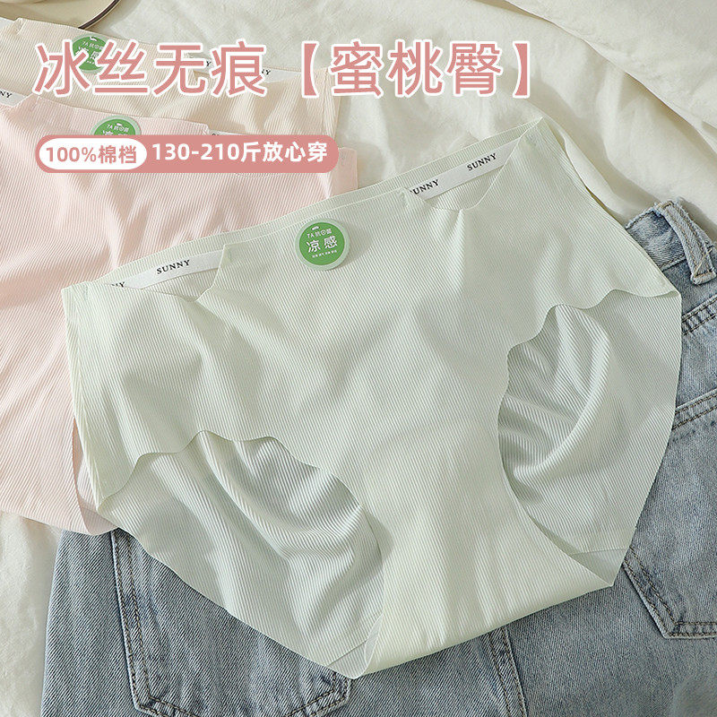 凉感冰丝无痕大码200斤内裤性感镂空3D蜜桃臀7A纯棉档纯欲小心机