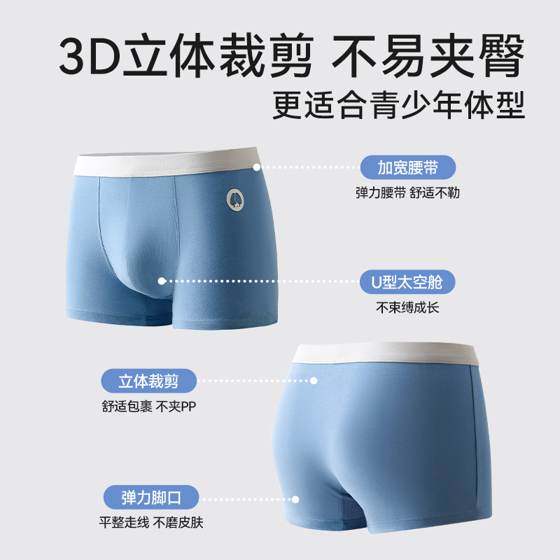 红豆青少年内裤男发育期学生初高中生纯棉抗菌大童胖男孩平角短裤