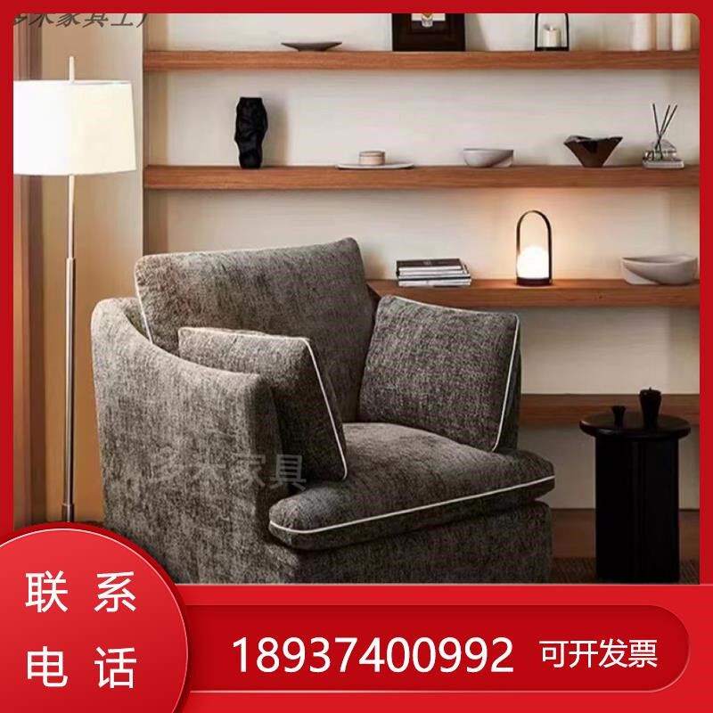 侘寂风雪尼尔贵妃单位山竹布艺日光榻小户型客厅拆洗沙发