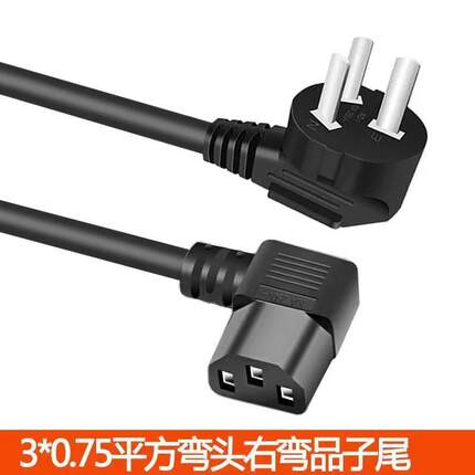 台式机显示器电视机打印机双90°度直角机箱电脑电源线三孔弯头线