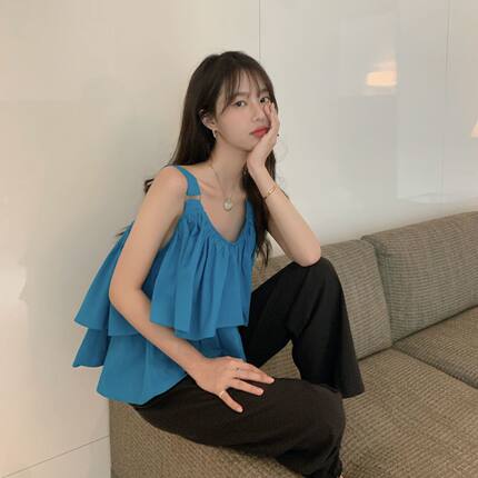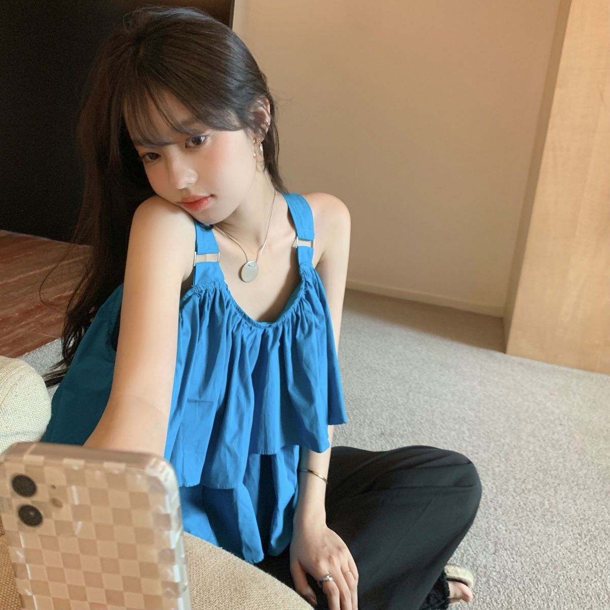 2024年夏季新款韩版设计感甜美百搭双层荷叶边吊带背心上衣女潮