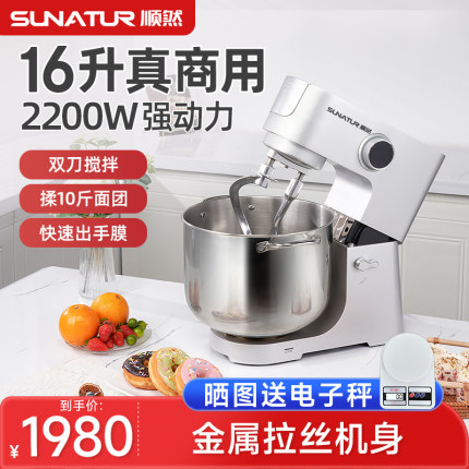 【国补15%】顺然商用16升厨师机大容量搅拌机打蛋双动双速和面机