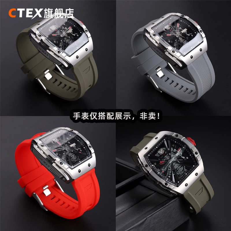 CTEX适配GEYA长城系列酒桶型硅胶手表带男格雅航天联名款橡胶表链