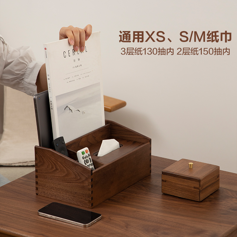 梵瀚 实木多功能纸巾盒客厅轻奢高档遥控器收纳盒茶几桌面抽纸盒