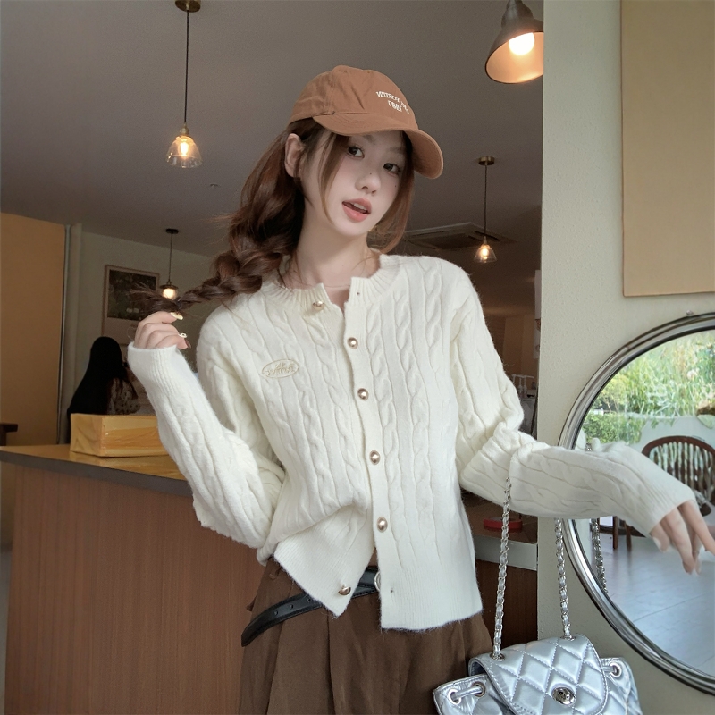 2025春秋冬韩系圆领小香风单排扣短款上衣麻花针织开衫毛衣女外套