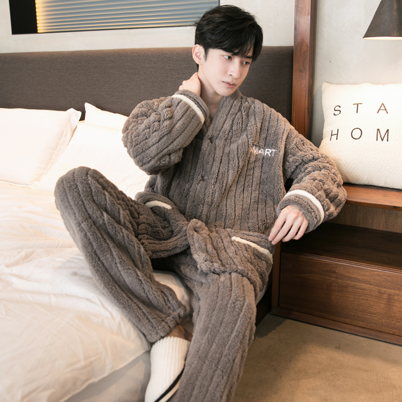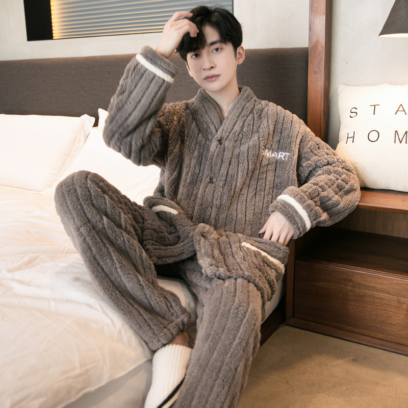 新款睡衣男春秋款加厚加绒法兰绒长袖保暖珊瑚绒家居服秋冬季套装
