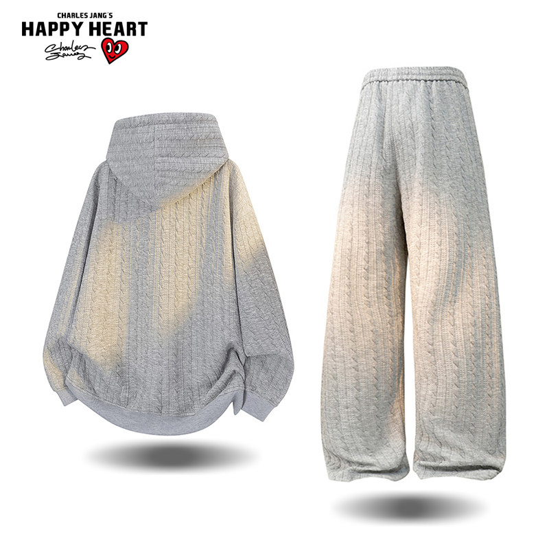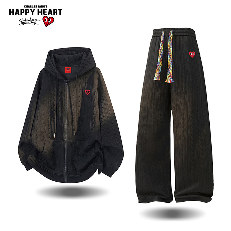 查尔斯桃心 美式提花套装男女春秋季开衫卫衣休闲直筒长裤两件套