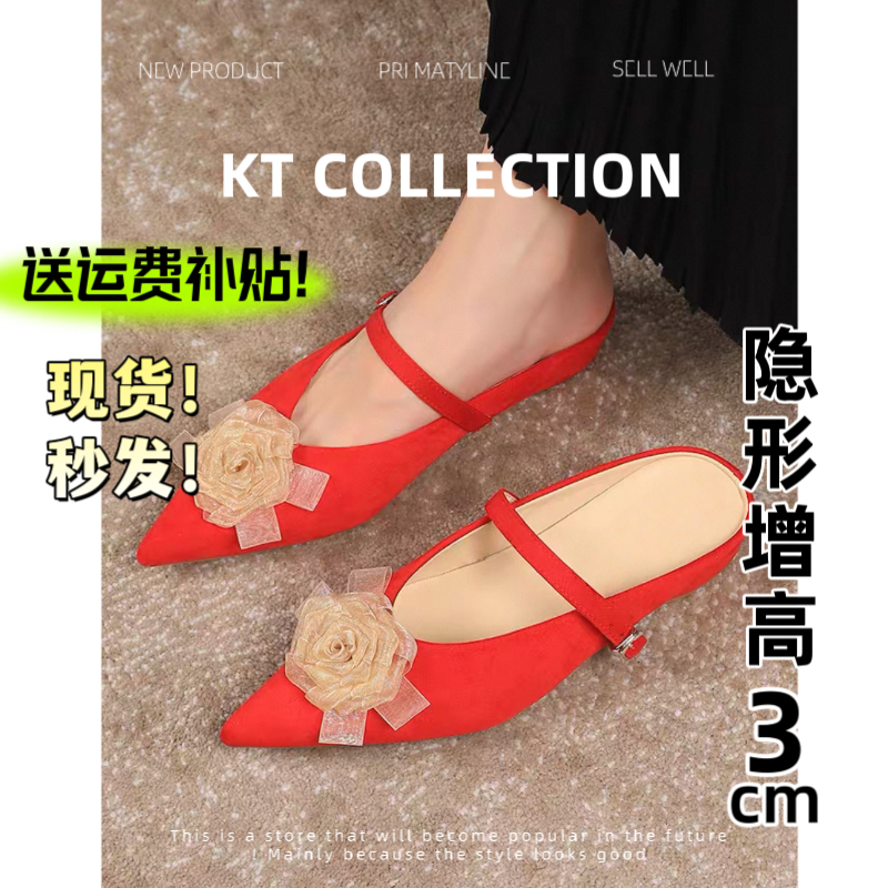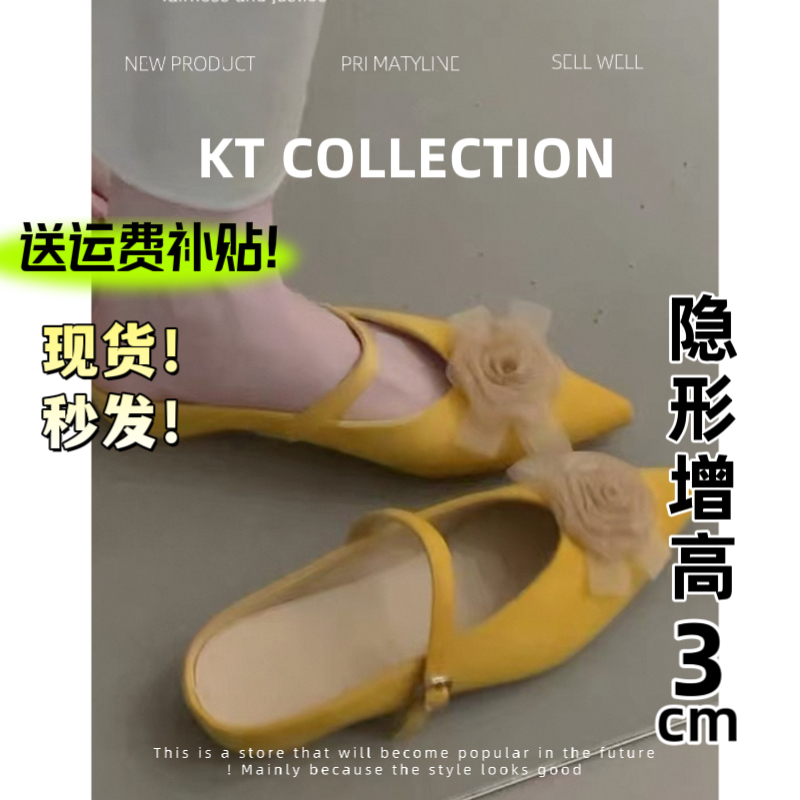 羊皮版!增高5cm~复古风尖头平底浅口单鞋女百搭休闲单鞋