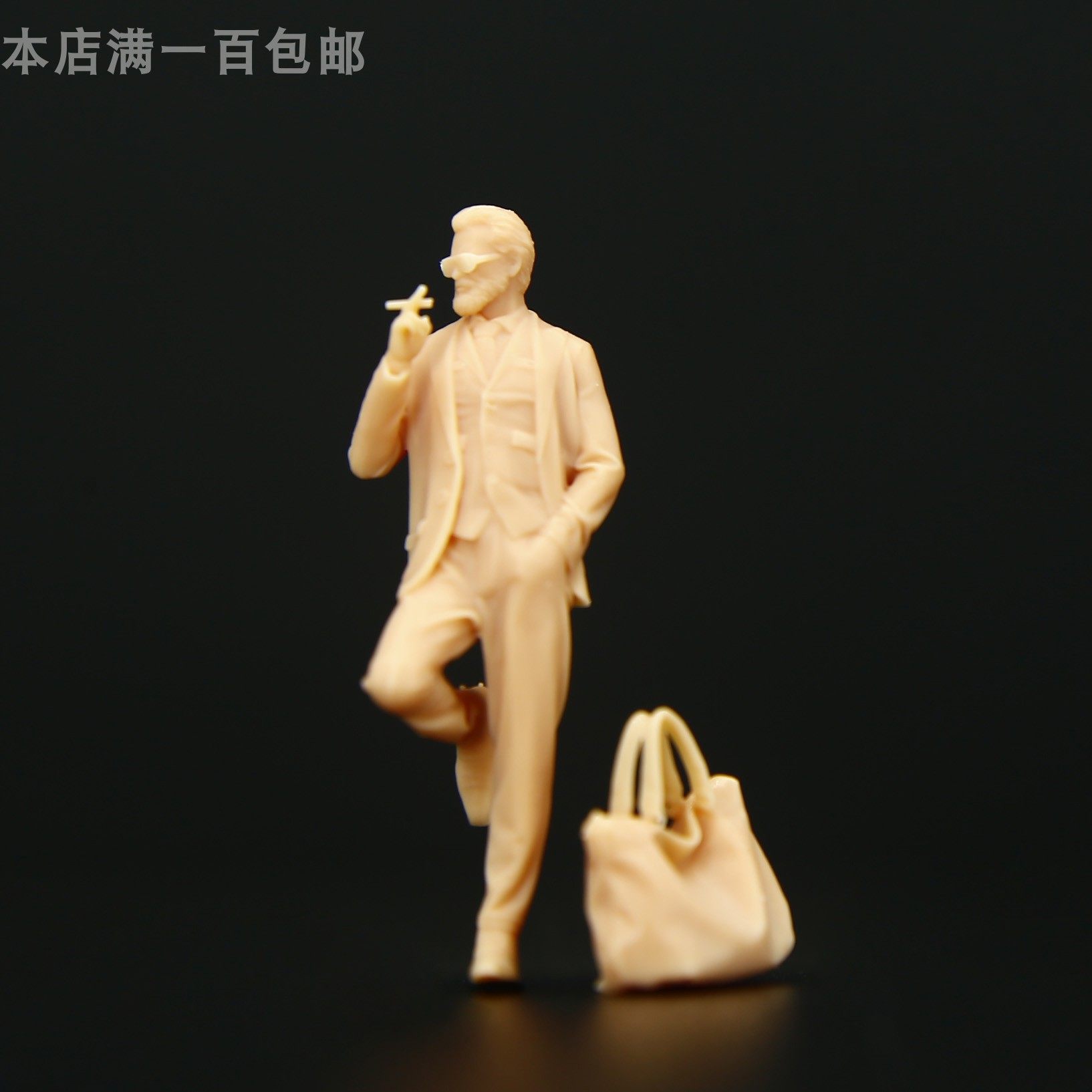 【海叔】1:64绅士大叔时尚杂志微缩模型1:43树脂白模小人偶A399