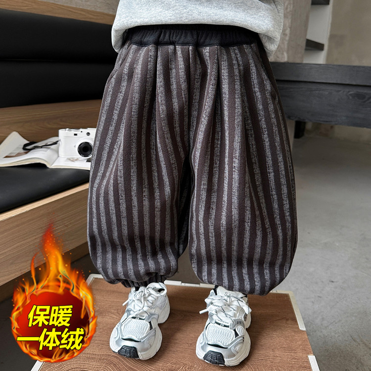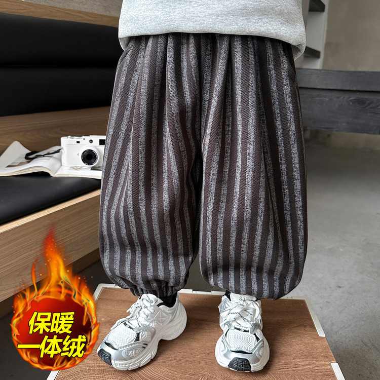 儿童裤子2025新款韩版洋气男女童宽松条纹中裤宝宝加绒加厚七分裤