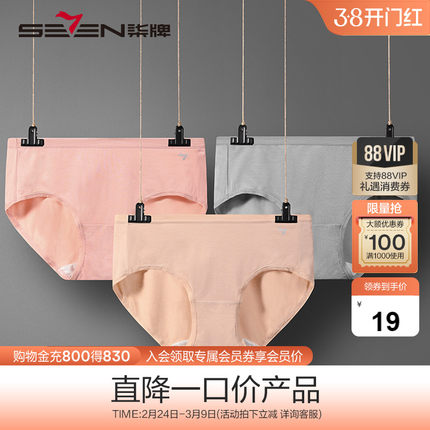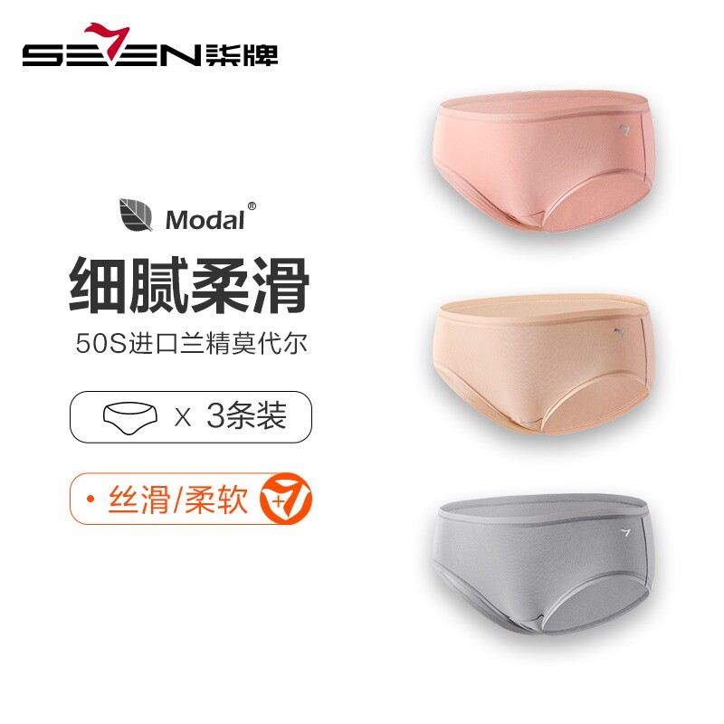 柒牌清仓莫代尔内裤女中腰纯棉档三角短裤抗菌少女舒适透气三角裤