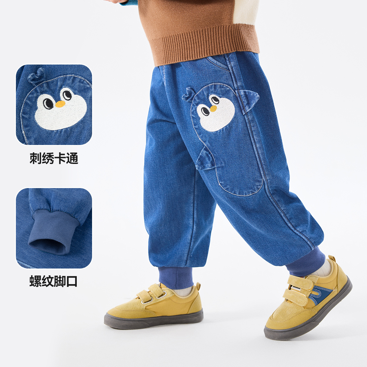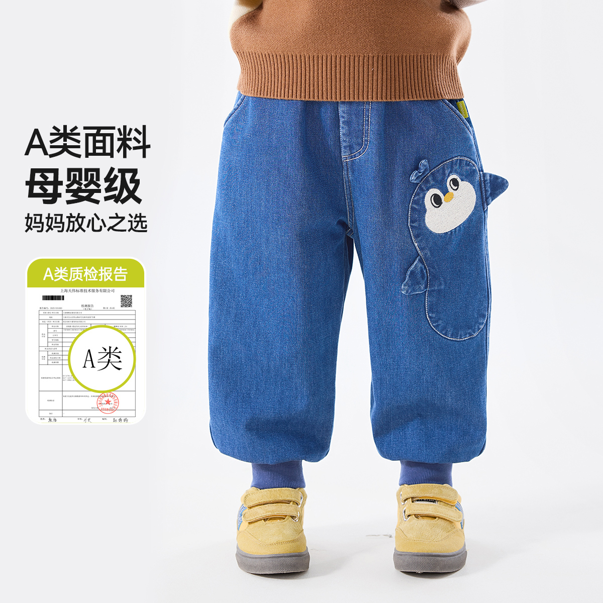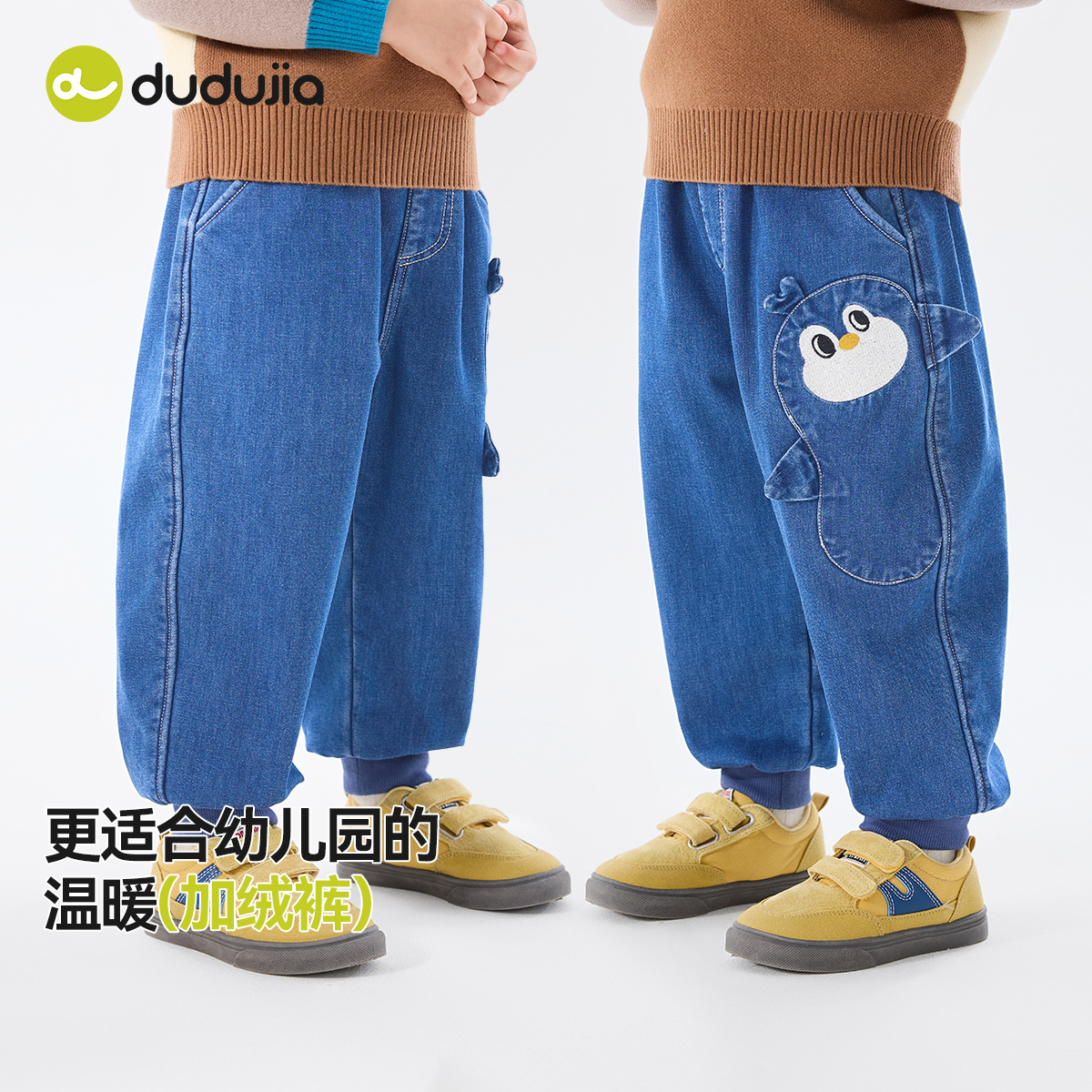 儿童牛仔裤嘟嘟家男童女童冬季新款裤子宝宝加绒长裤衣服婴儿童装