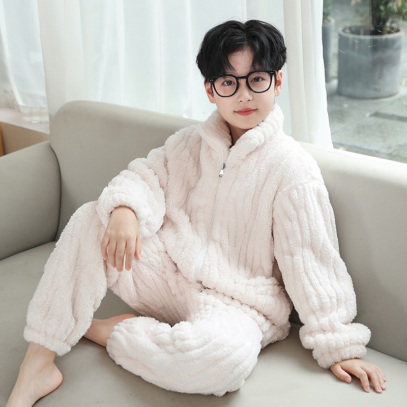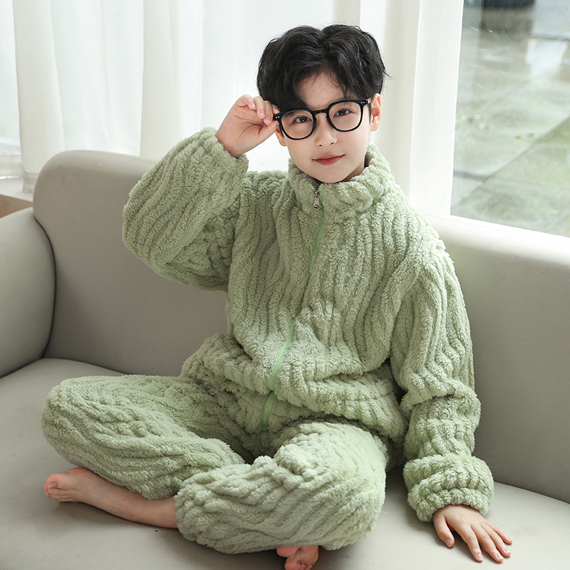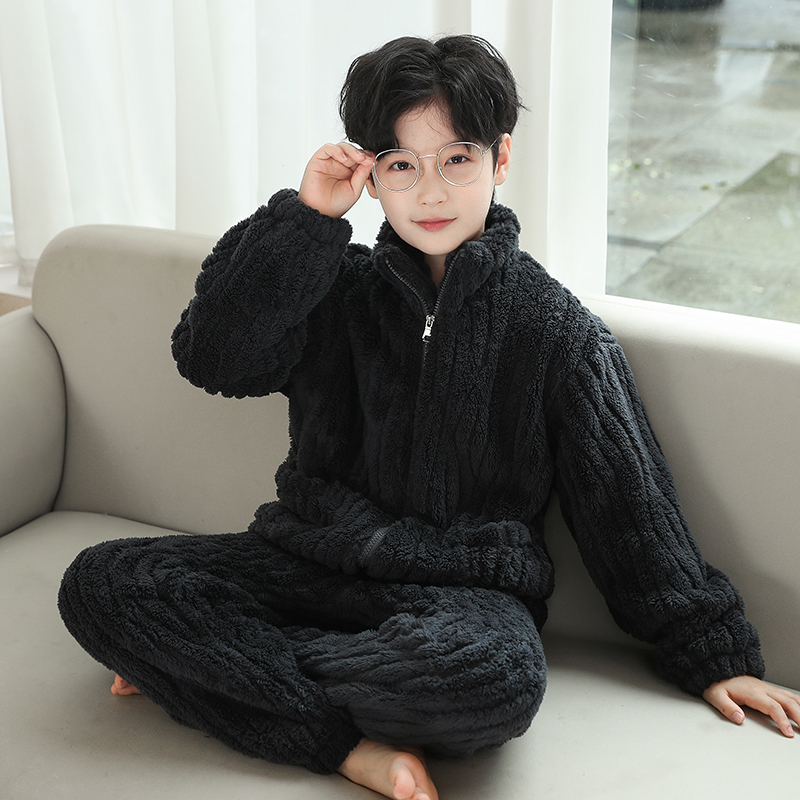 男童睡衣法兰绒秋冬季儿童加厚款保暖珊瑚绒套装中大童外穿家居服