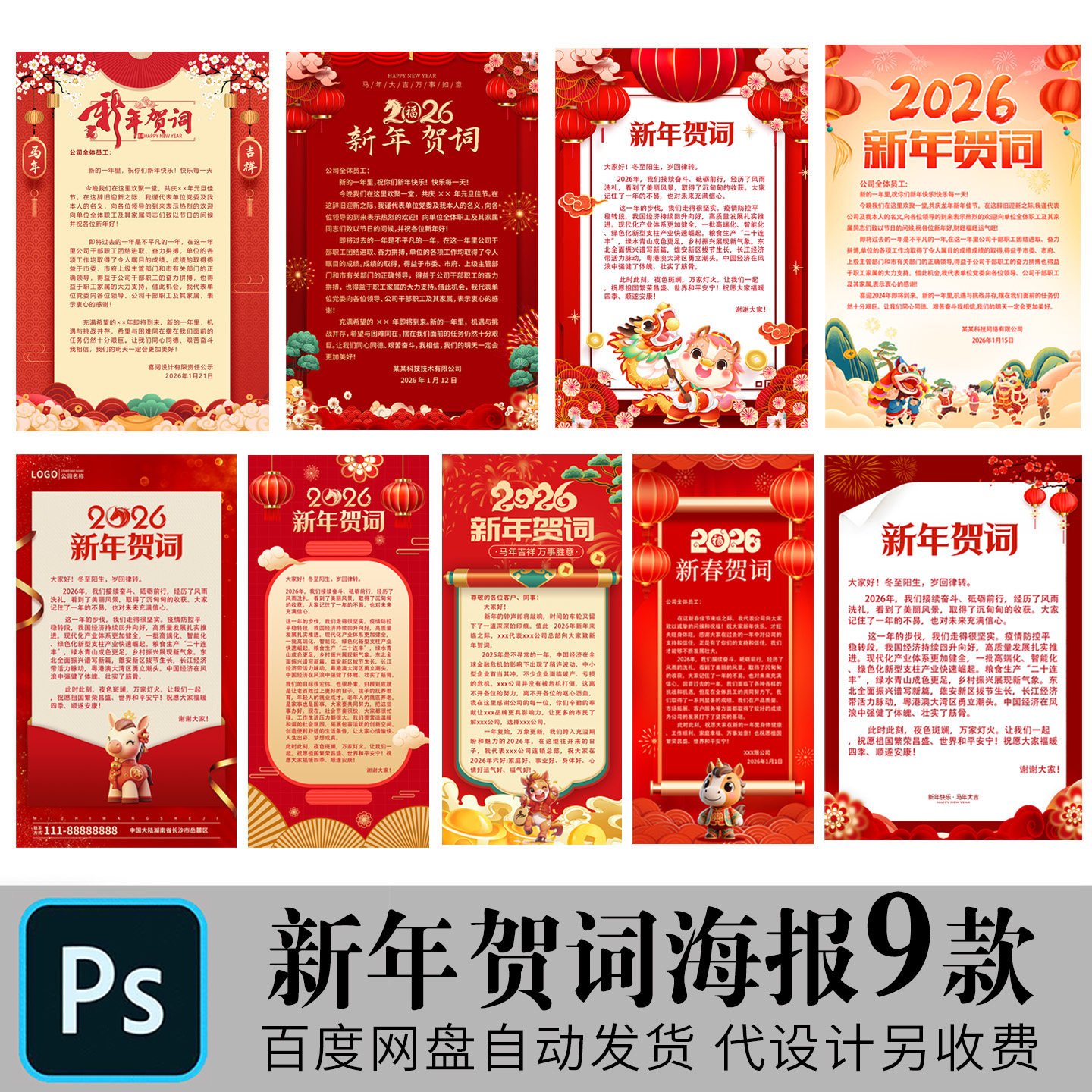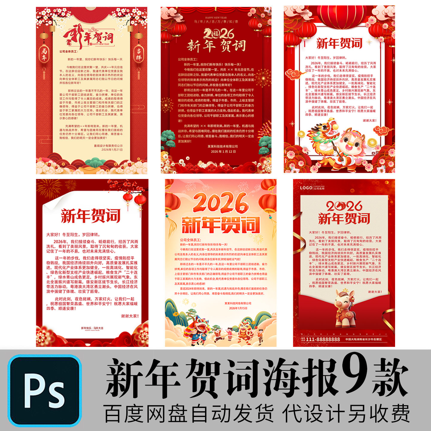 2026马年公司单位领导新年致辞贺信新年春节贺词海报PSD素材模板