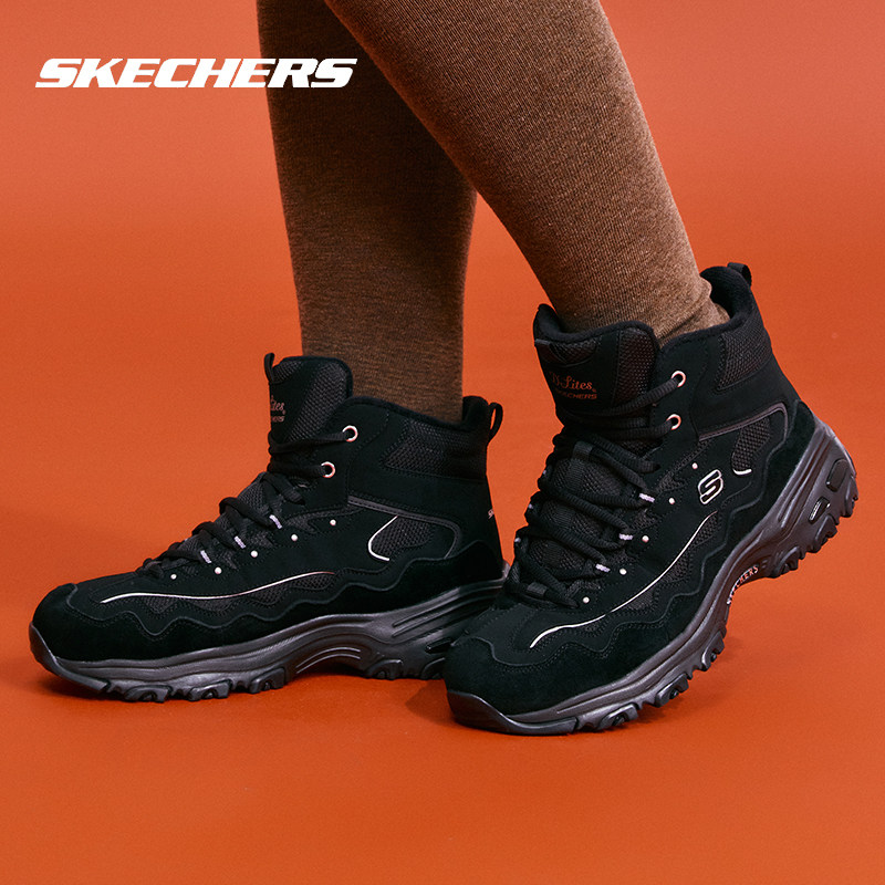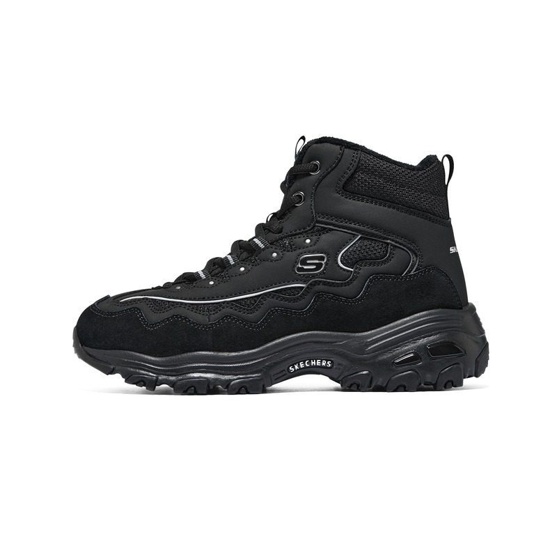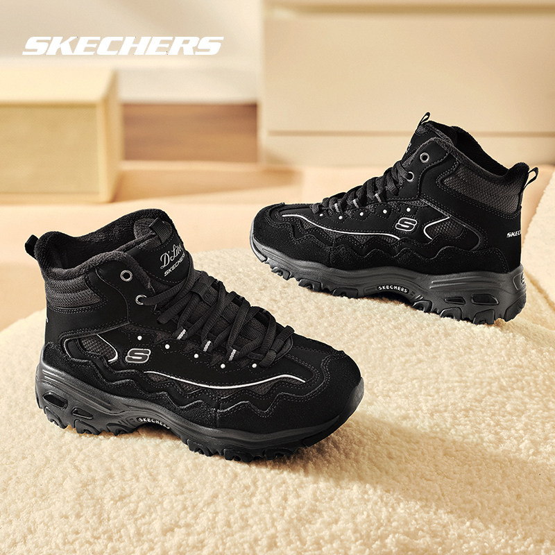斯凯奇加绒熊猫鞋冬季新款女鞋中高帮鞋加绒保暖运动鞋黑色棉鞋子