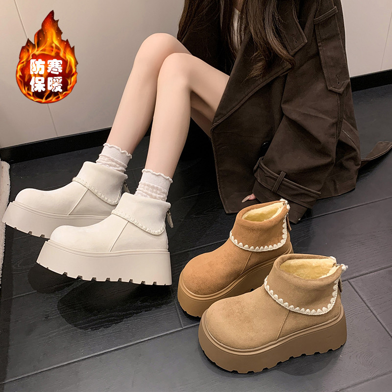 白色厚底增高雪地靴女2025秋冬季新款百搭勃肯短靴加绒加厚棉鞋子