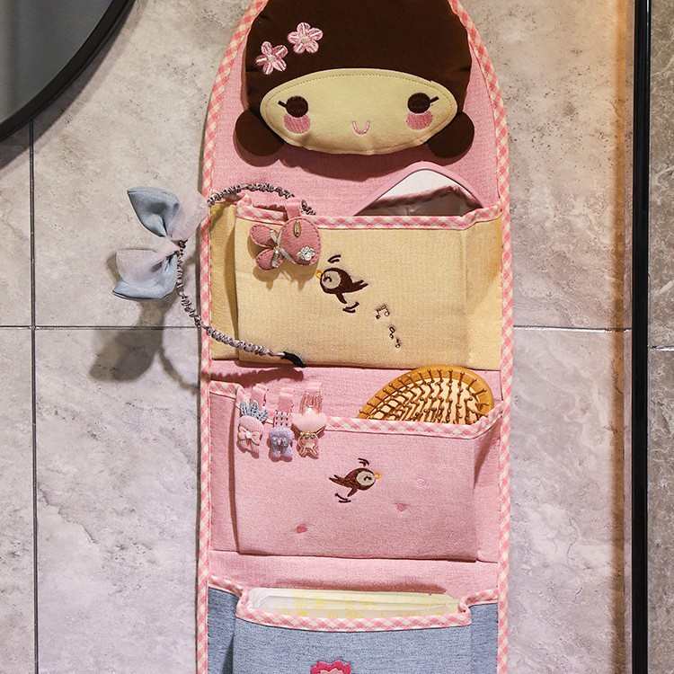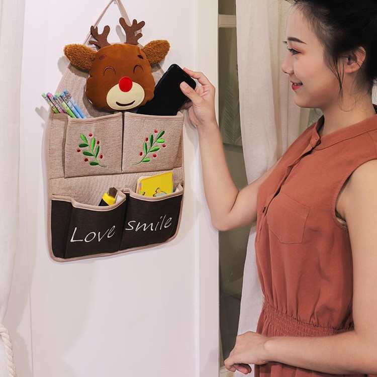 厨房布艺挂墙收纳挂袋 钥匙手机遥控器墙上置物袋床头墙挂式布袋