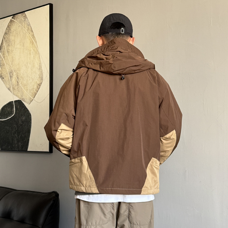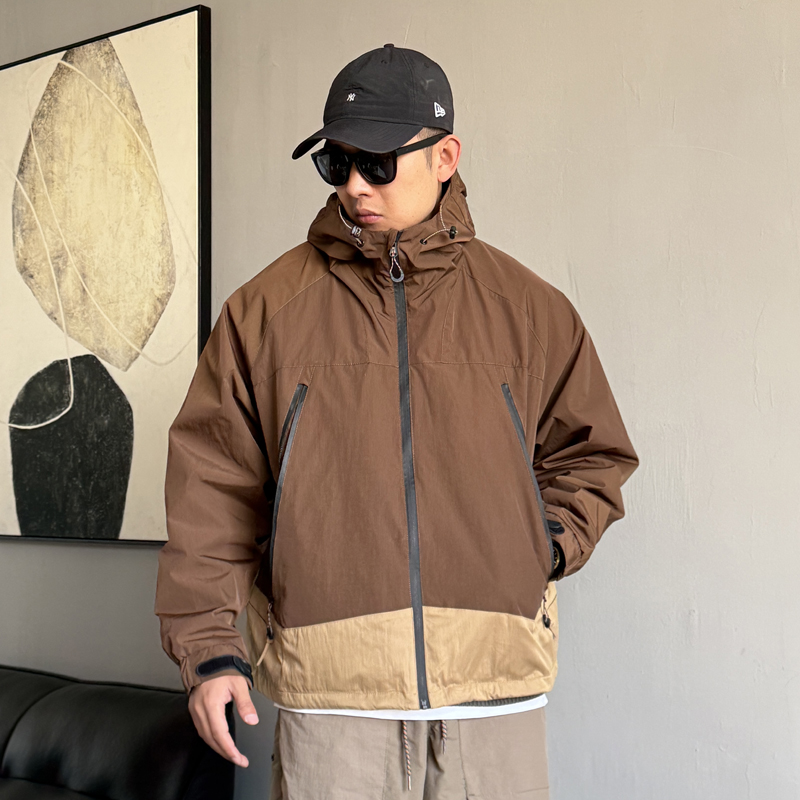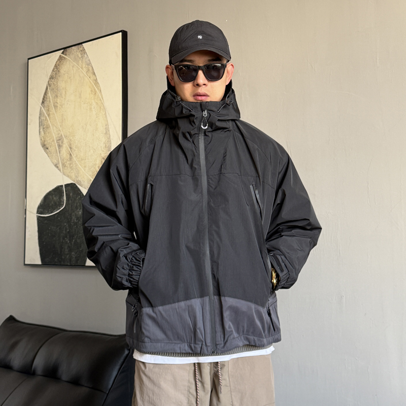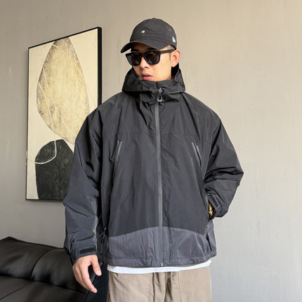 秋冬季美式休闲痞帅拉链口袋连帽工装夹克男宽松户外三防冲锋衣潮