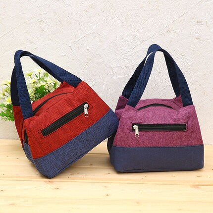 妈咪包上班小布包包包女手提包防水牛津布饭盒袋便当包化妆包红色