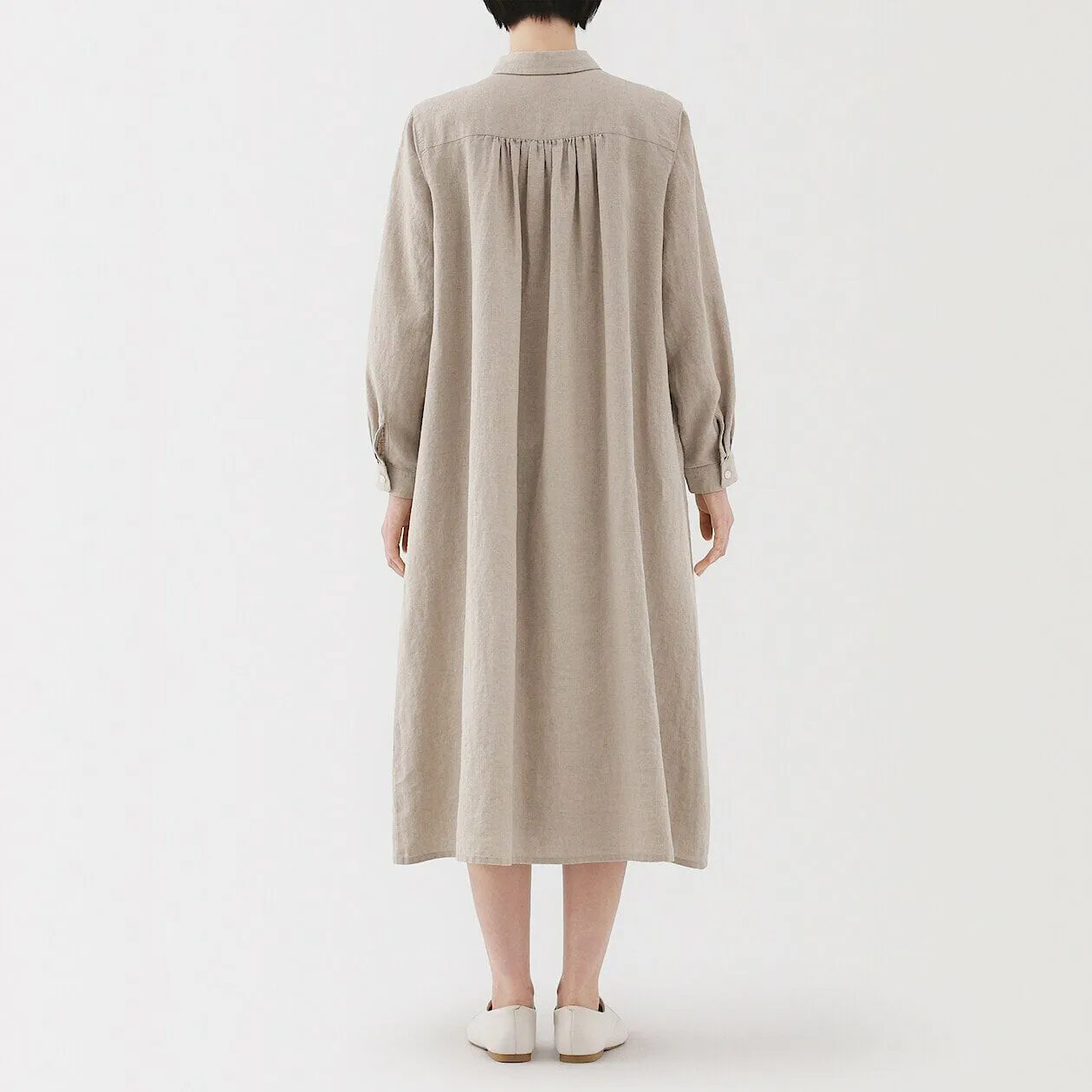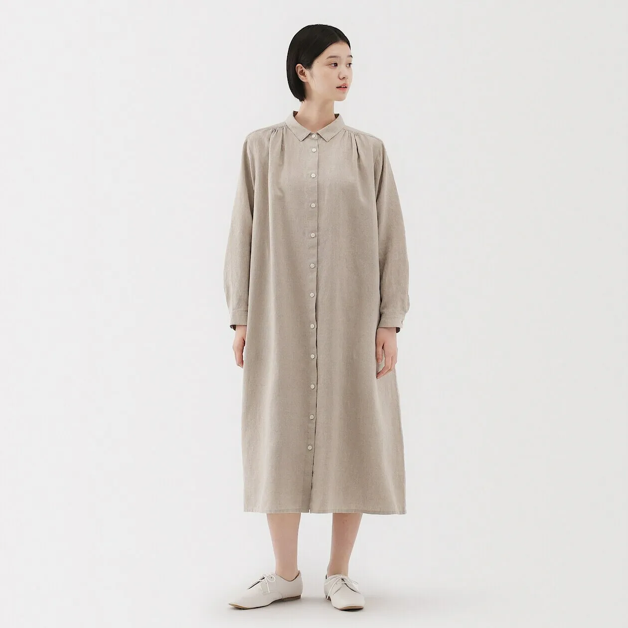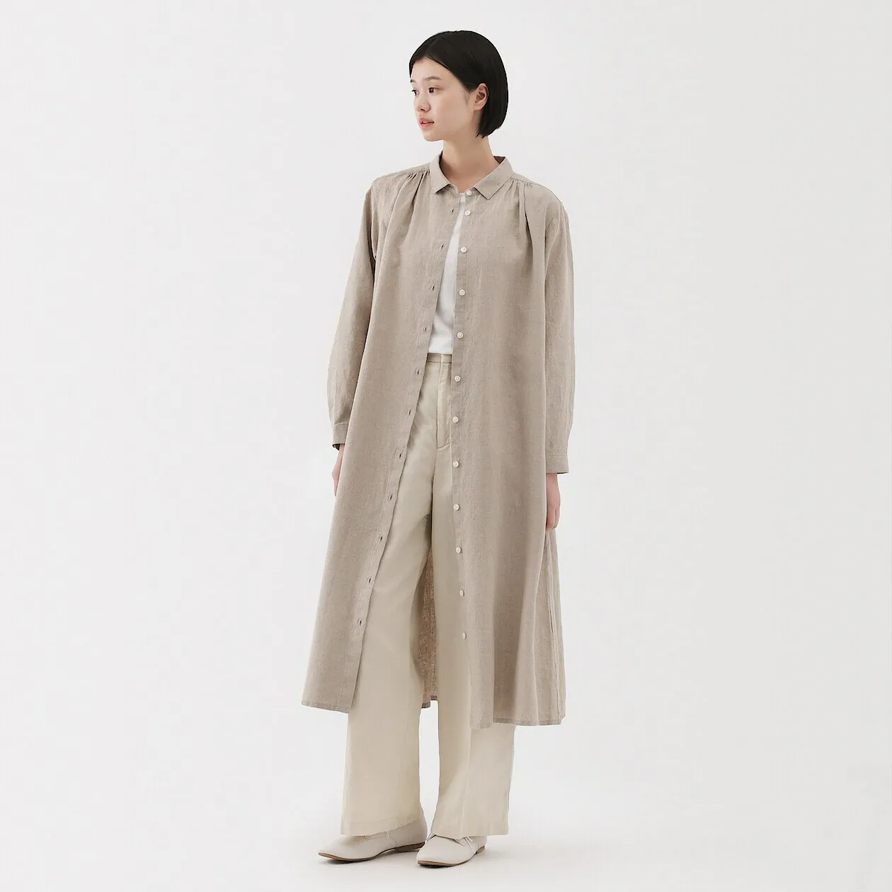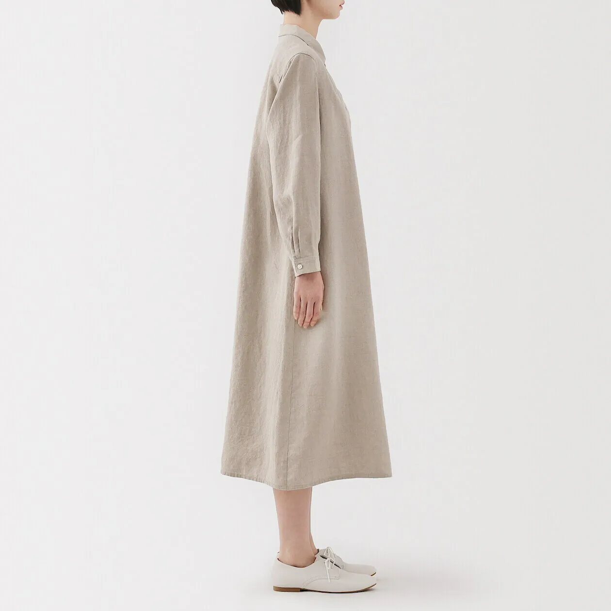正品MUJI无印良品2025女式水洗长袖衬衫连衣裙汉麻2025