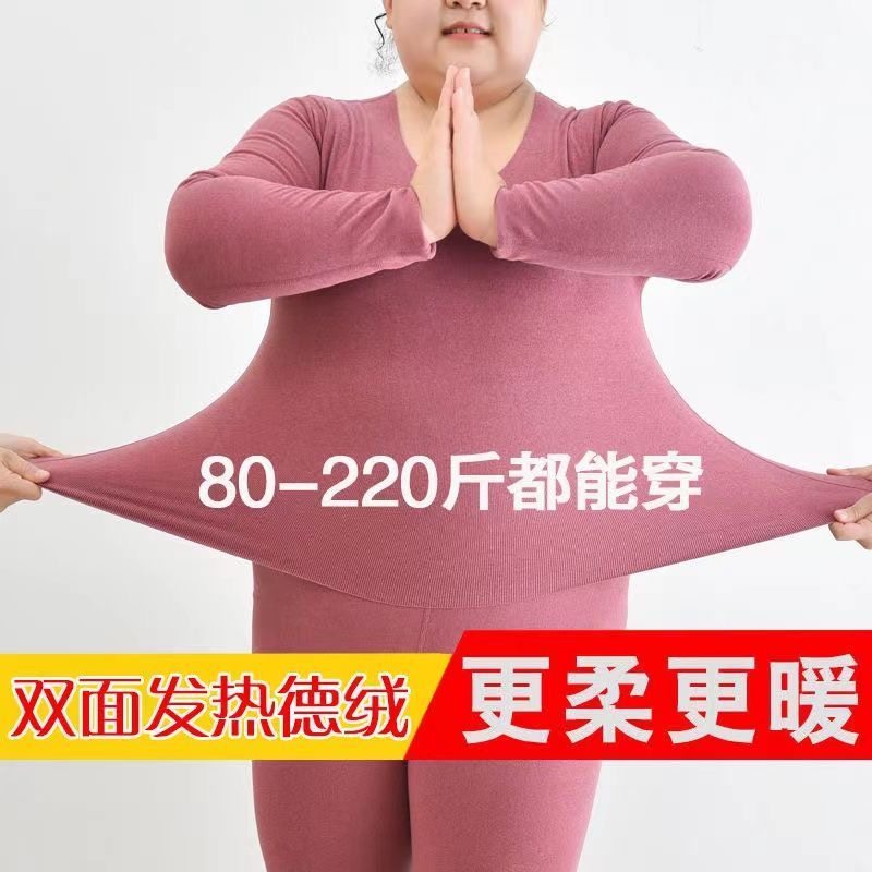 双面德绒保暖内衣女士加厚大码胖MM200斤打底毛衫中老年妈妈套装