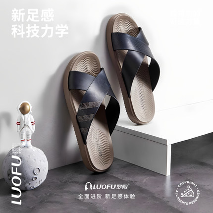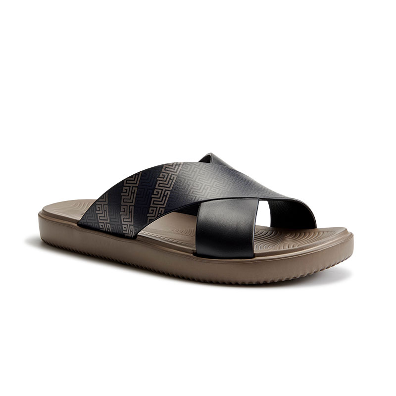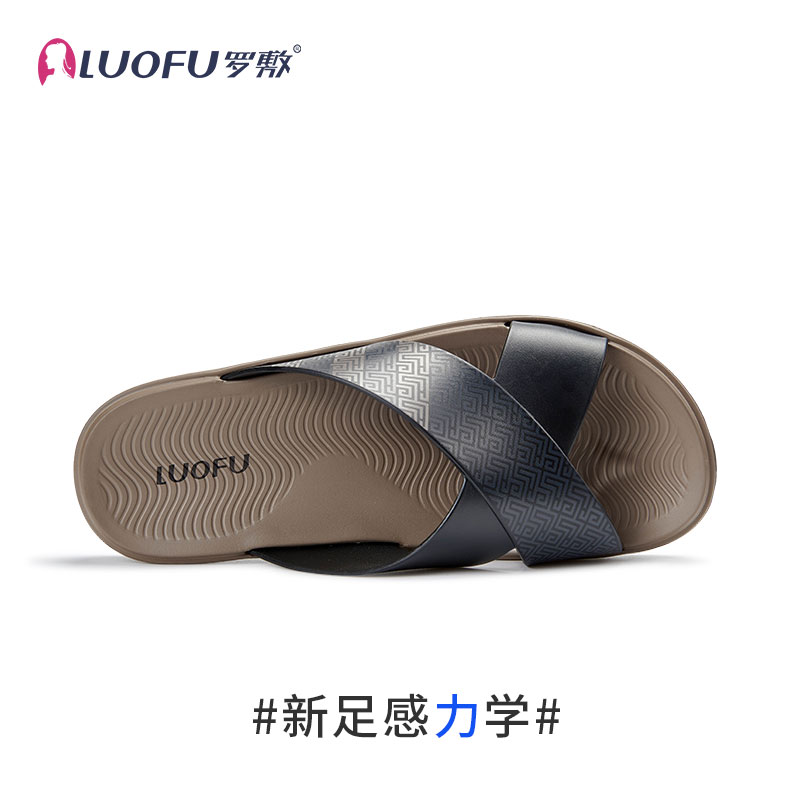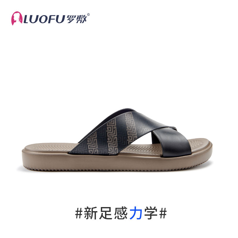 罗敷交叉带面男士平底居家凉鞋