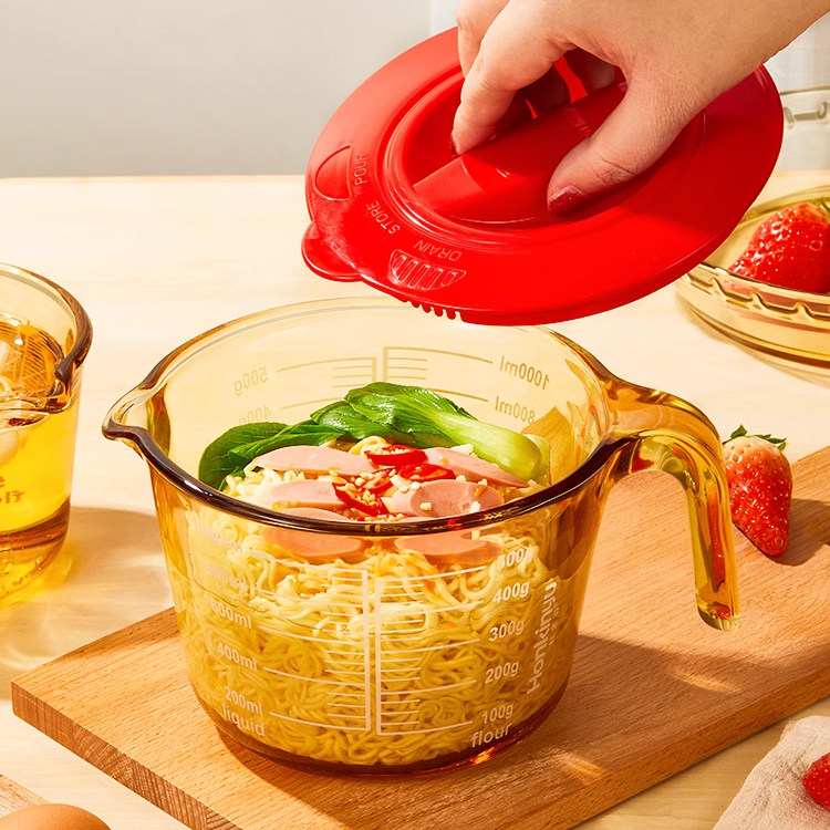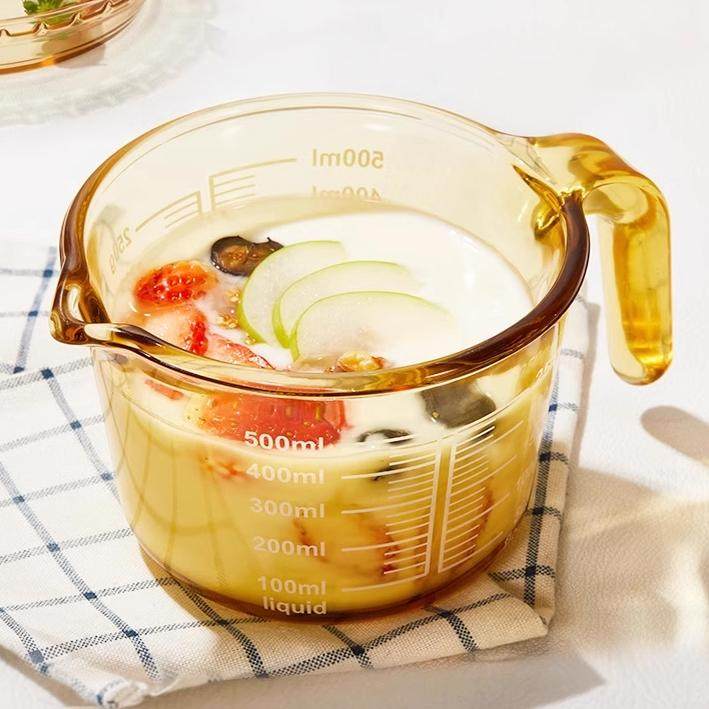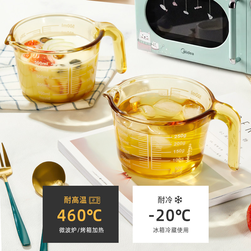 刻度牛奶杯微波炉加热早餐杯带盖烘培量杯带刻度耐高温热奶杯子