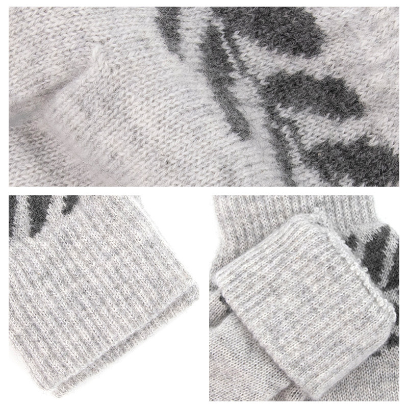 100%纯山羊绒提花手套女士冬季分指毛线加绒保暖防寒学生开车礼物