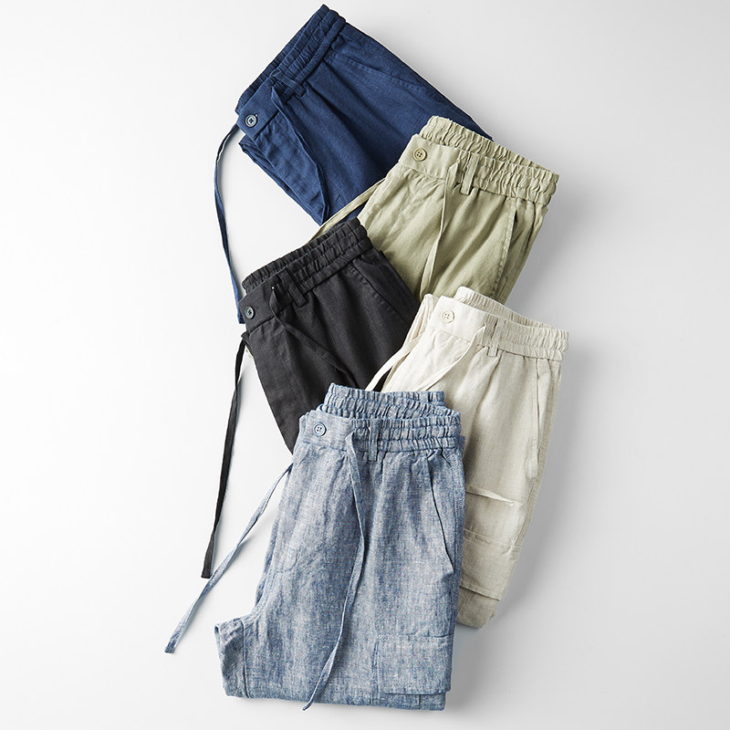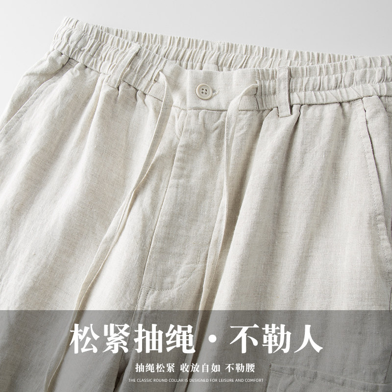 夏季薄款工装亚麻裤男宽松大码直筒休闲棉麻男裤复古纯麻料长裤子