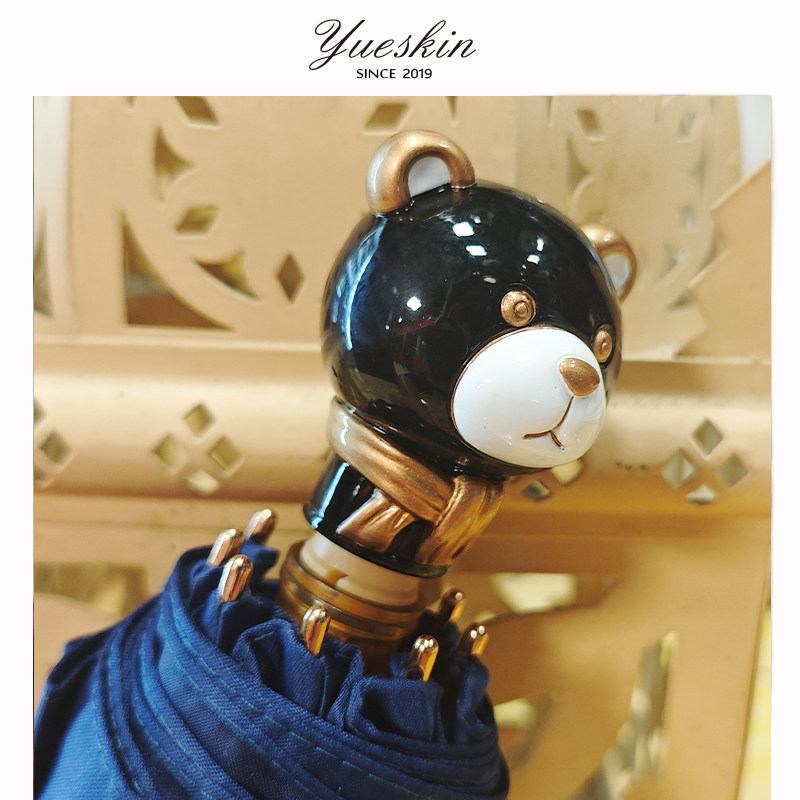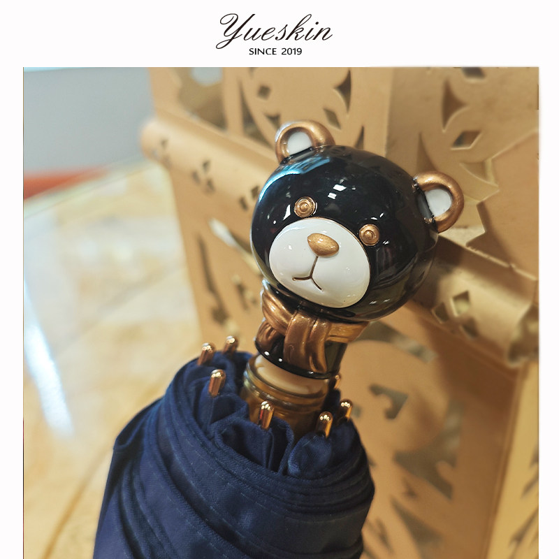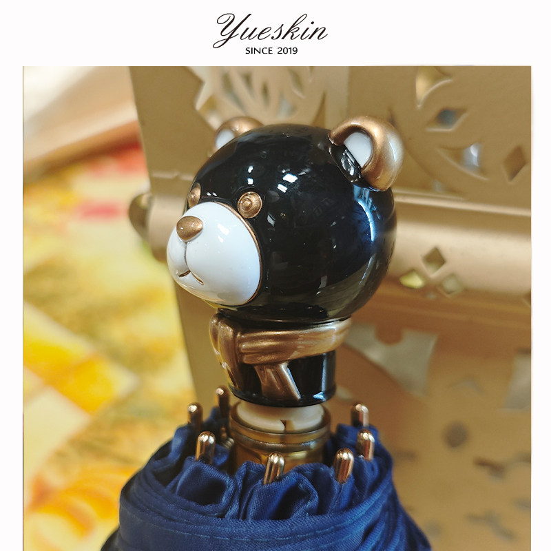 yueskin羽琴防晒防紫外线雨伞小熊头五折叠太阳伞女两用高级小巧